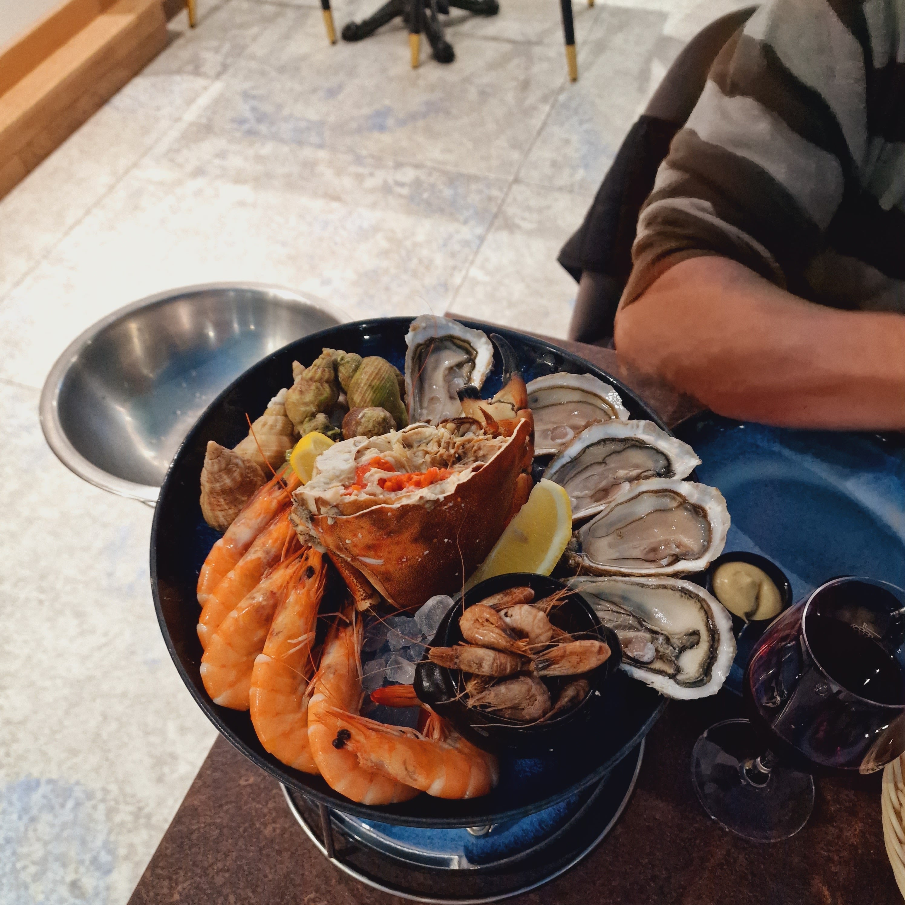 Posté le 13/04/2024 à 20:42"Nous sommes entrés dans ce restaurant de fruits de mer en suivant les commentaires en ligne. Le cadre est très sympa, nous avons été bien accueillis. Nous avons commandé une assiette d’huîtres (22€), une entrée du jour (9€) et un dos de maigre (23€). Tout est bon. C’est une bonne adresse. Le service est bien."