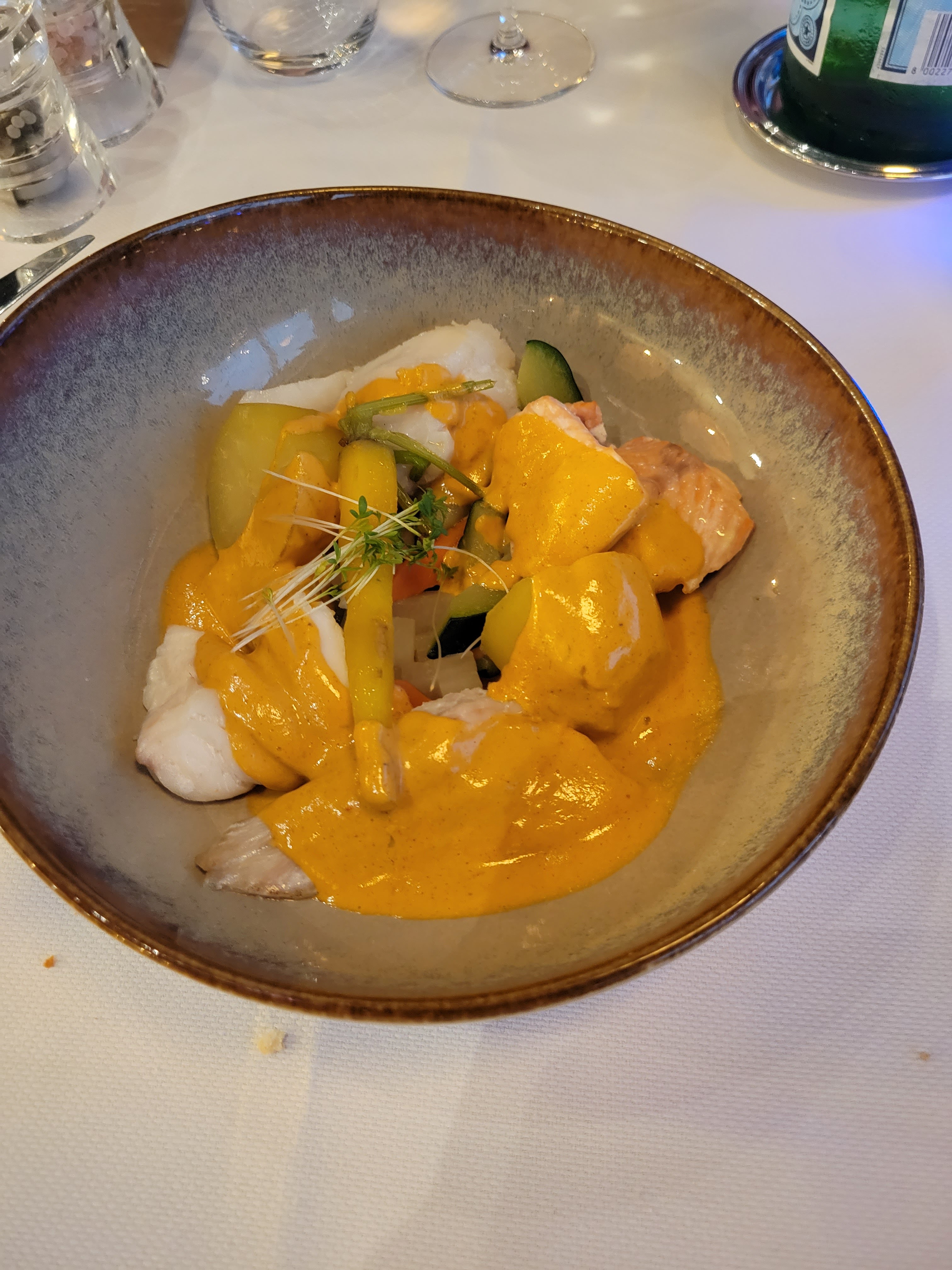 C'était une première pour nous ! On a pris la marmite et la bouillabaisse Étaploise . Que dire , c'était bon , mais ça manquait de caractère , manque d'assaisonnement et d'épices . La marmite a été servie froide !!! (obligé de la faire réchauffer) Très bon dessert. À refaire, pour un autre essai 🐚🦀🦞🦐