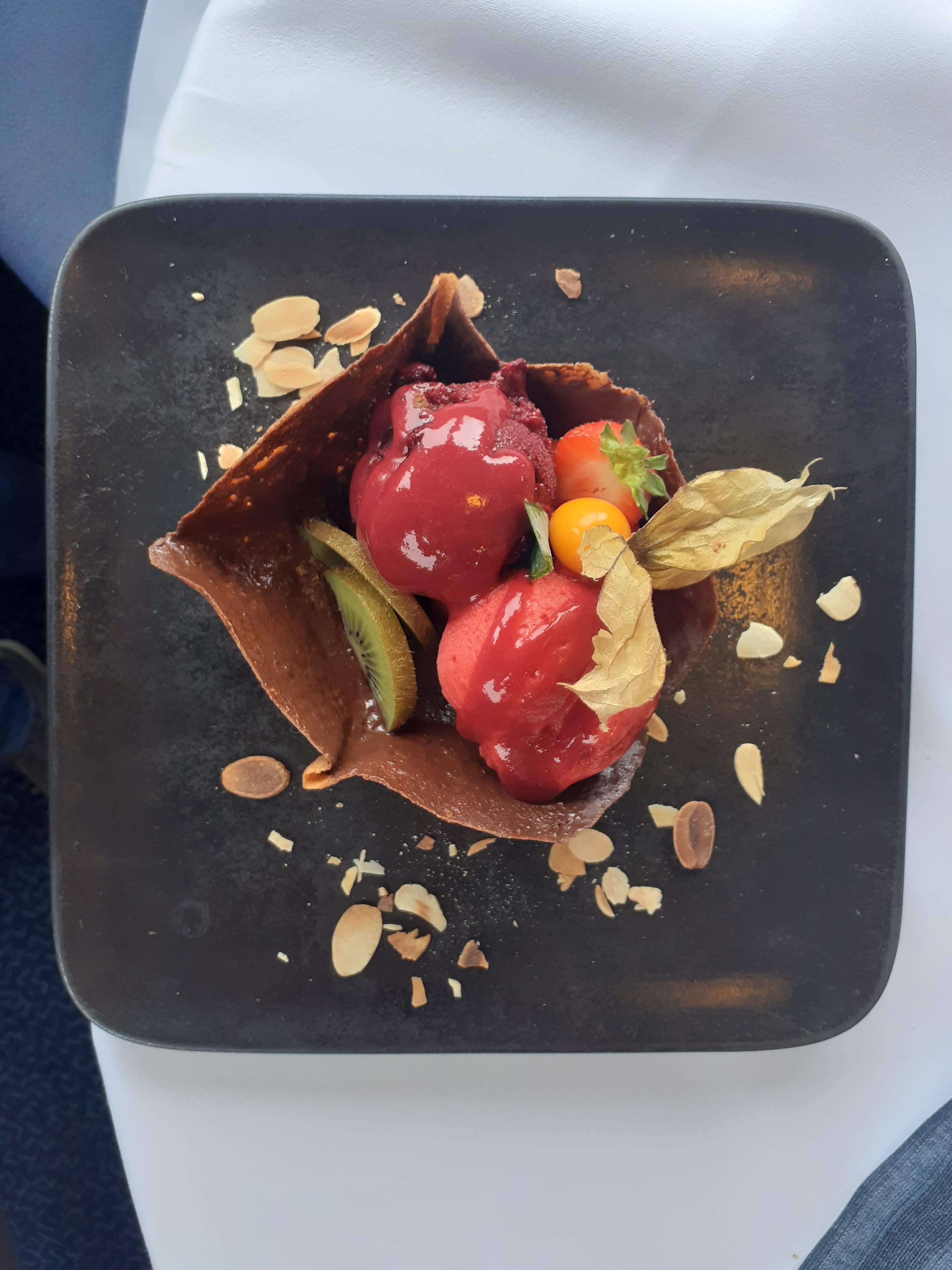 Posté le 08/12/2024 à 18:45"Le dessert du menu « godille » est très délicieux et très bien présenté. Une belle assiette, bravo au pâtissier"