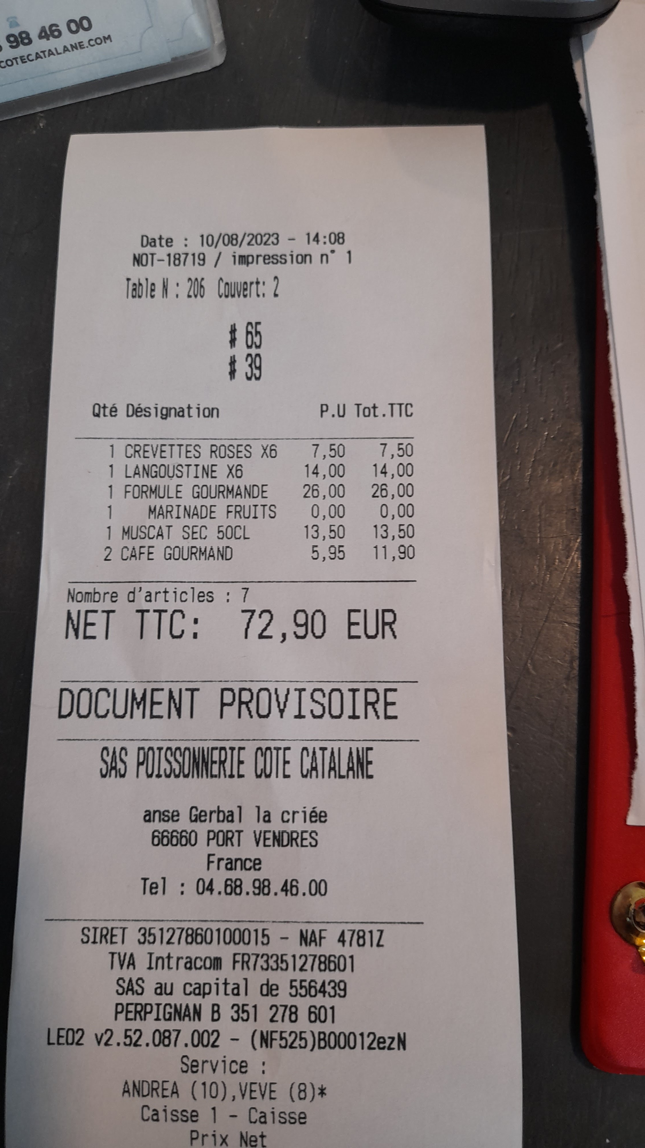 Posté le 18/08/2023 à 19:11" Fruits de mer très frais, prix abordables et grande attention ! "