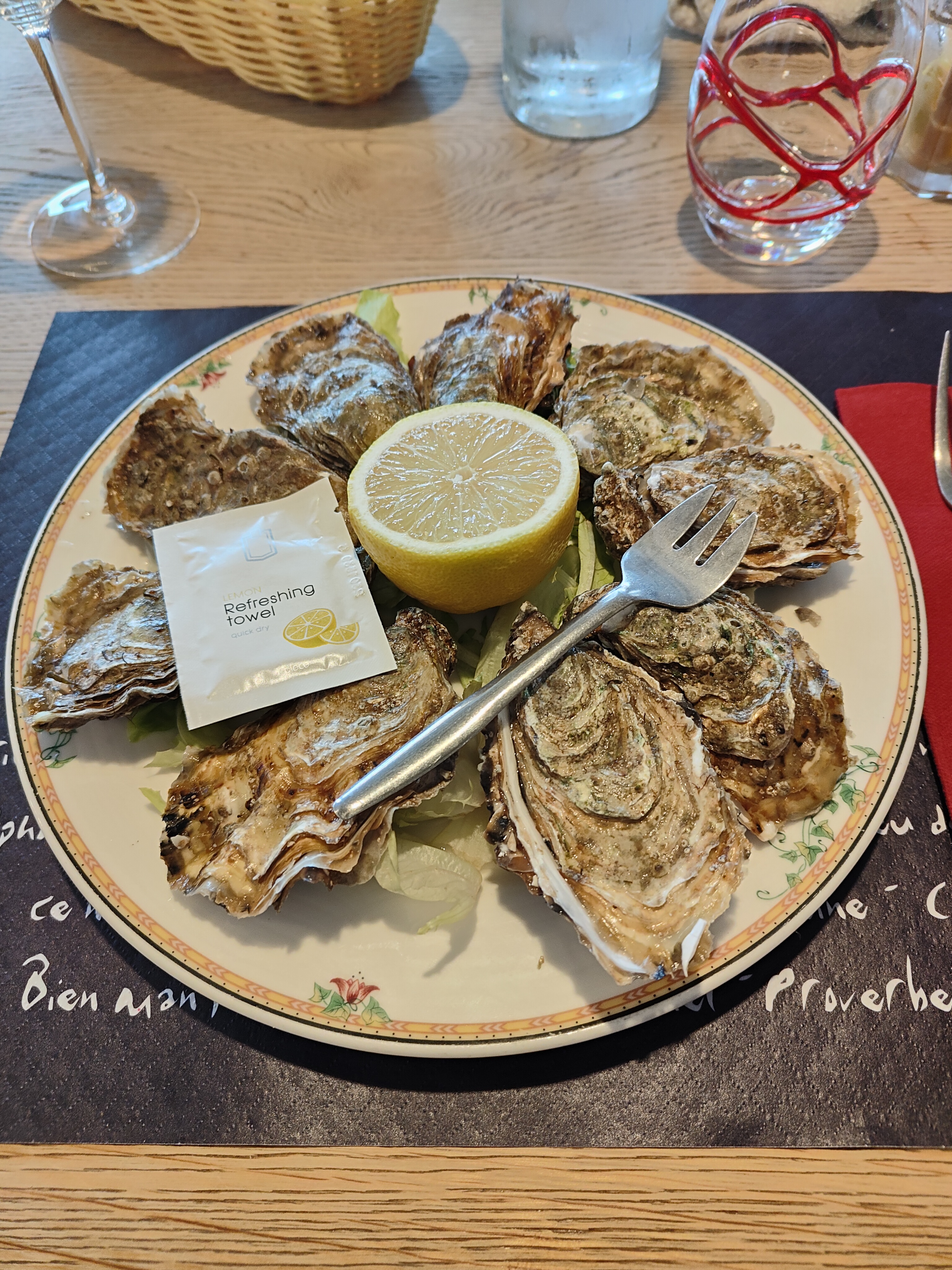 D'excellentes moules au camembert, mais il y a aussi des huîtres et des crevettes, 😉. Un très bel endroit. Très sympathique. Je recommande.