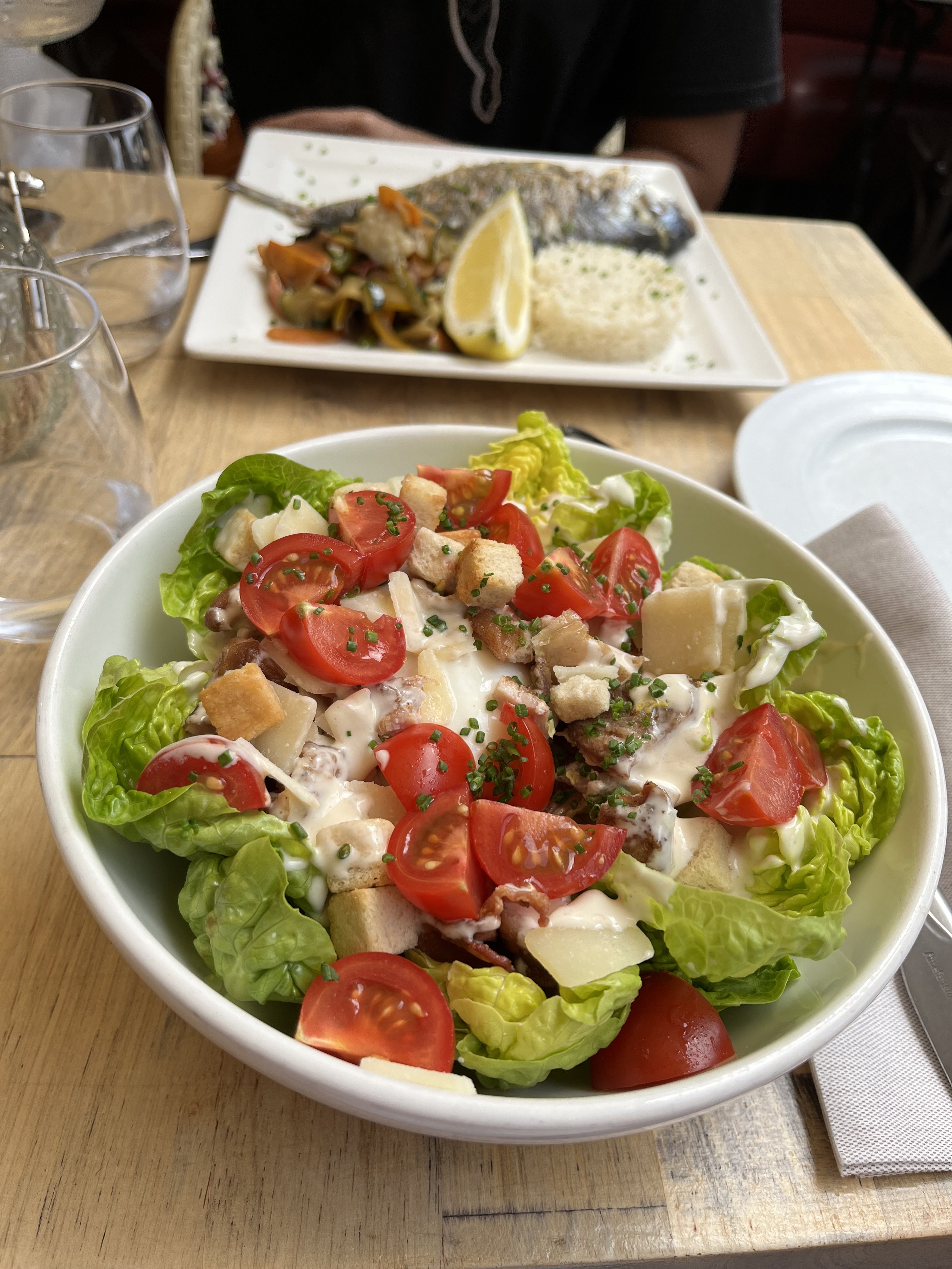 La salade César plus que quelconque,meilleure chez Burger King.... tagliata de bœuf bien trop dures pour des dents normales... seules les moules marinières étaient correctes. Chaise en mauvais état, pas de set de protection sur la table, poussières et autres sur le banc contre la paroi, bref pas envie d'y rester. A éviter pour moi, les prix étant aussi chers et parfois plus que dans les autres restaurants.