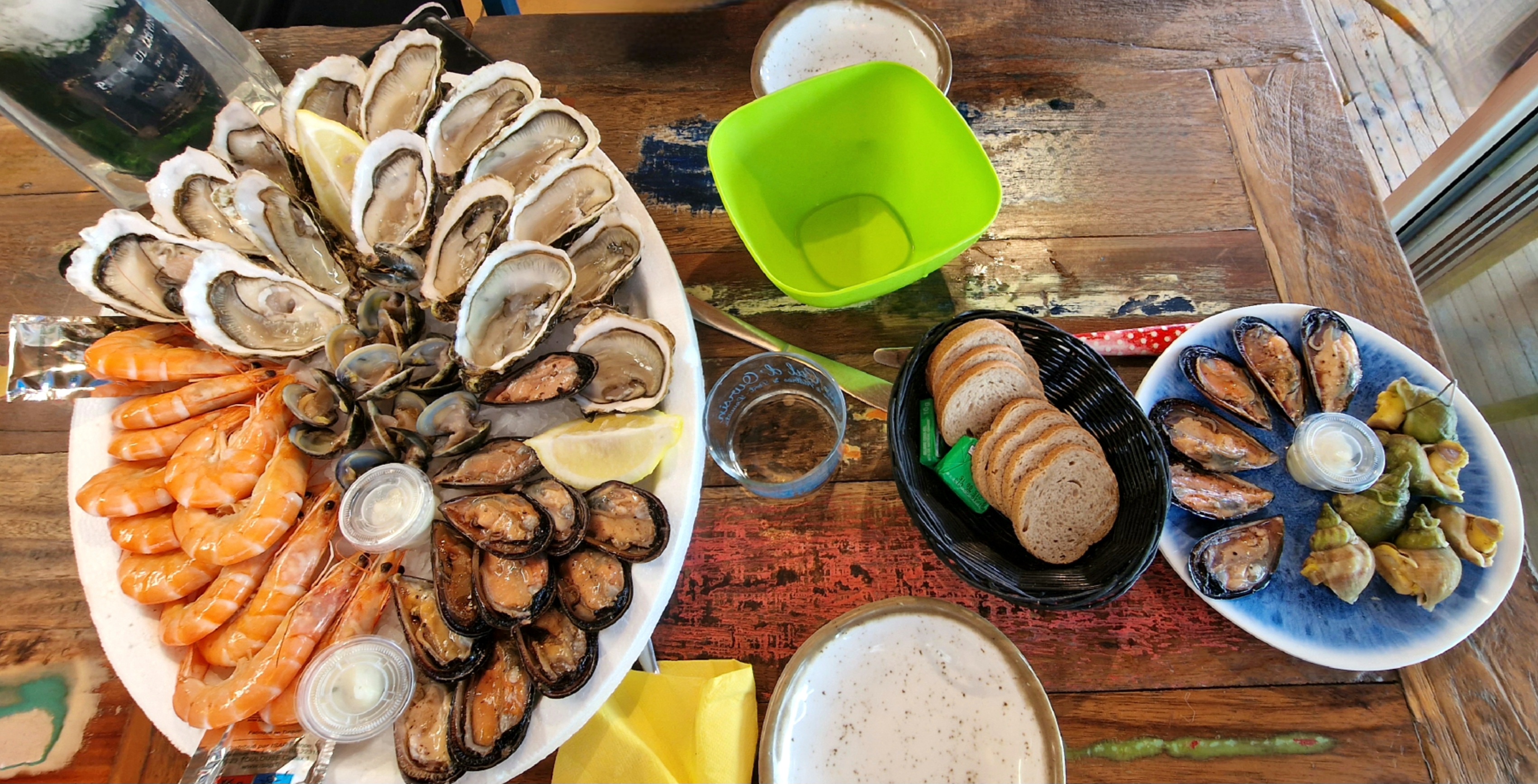 Plateau de crevettes et huîtres magnifique. Rapport qualité prix imbattable