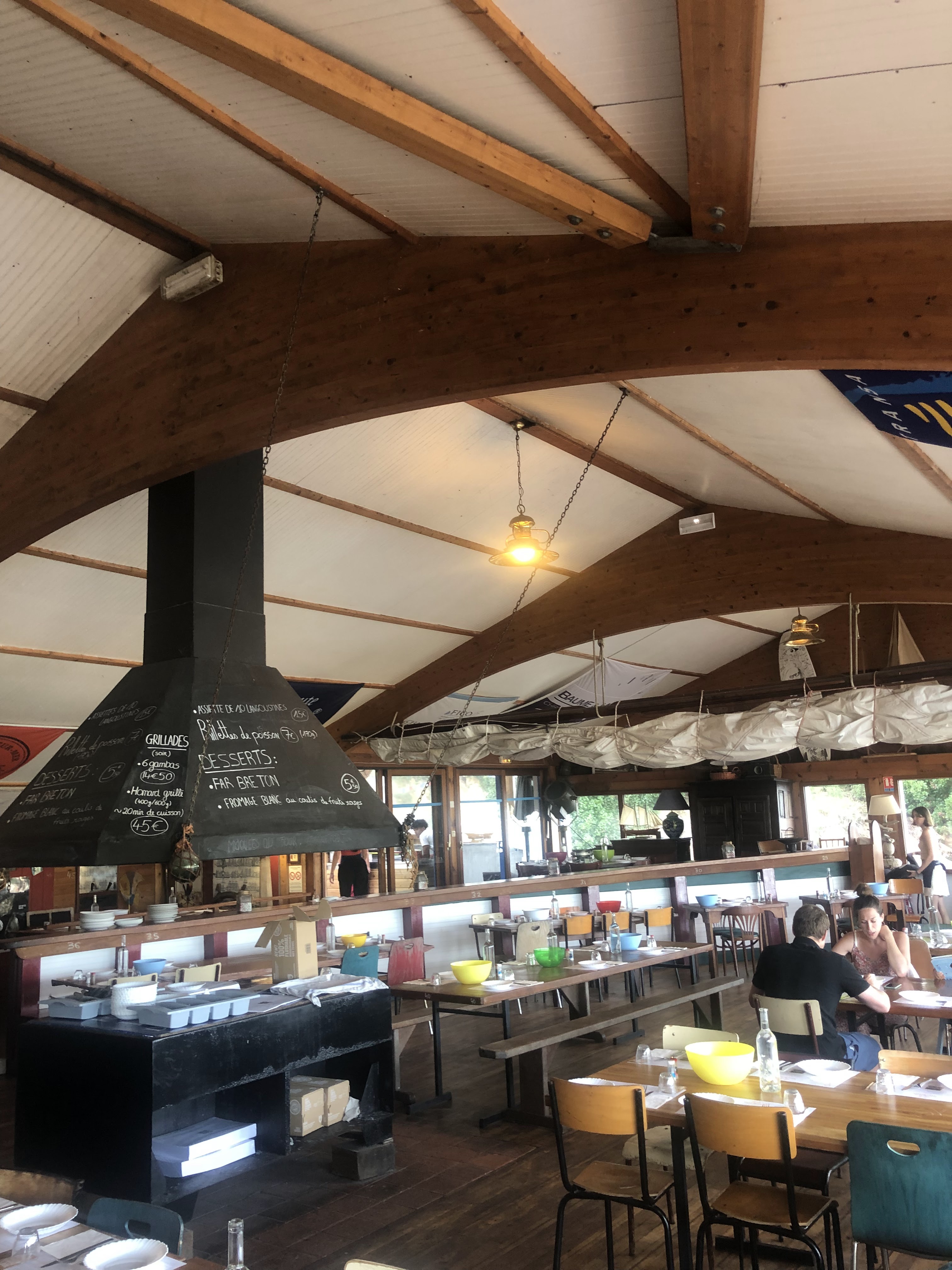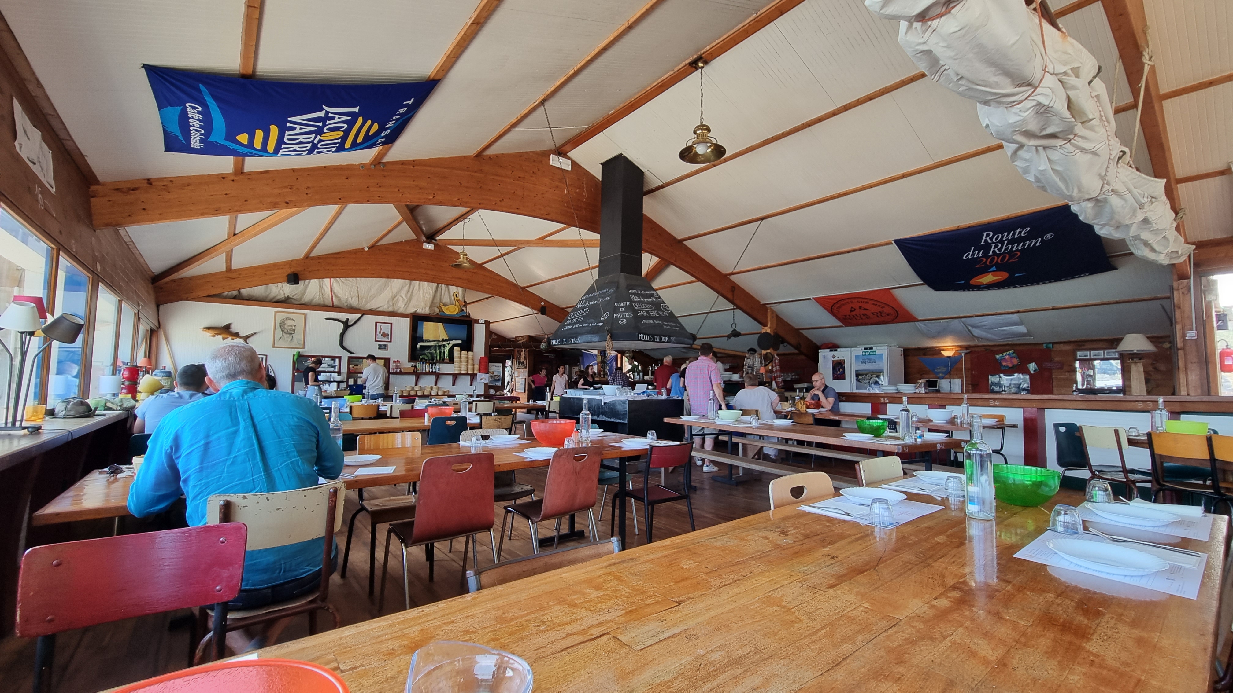 Lieu atypique ( genre cantine) mais très agréable. Le choix de notre groupe s’est porté à l’unanimité sur les moules/frites, celles du jour à l’ail, excellentes ! Grands contenants sur la table ronde en surplomb face au port. Très bon souvenir.