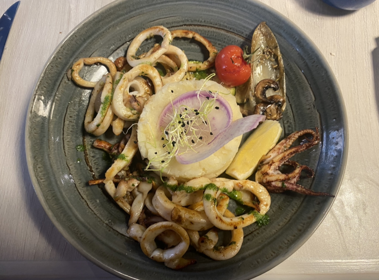 Nous sommes déçus par l'accueil à notre arrivée, même si le service s'est avéré meilleur par la suite. Les huîtres étaient bonnes, tout comme la parillada de poissons. Cependant, nous avons rencontré quelques problèmes : les couteaux contenaient du sable , et le calamar farci était une déception. Malgré une belle présentation véritable, le calamar était juste cuit, la farce manquait de tenue et était froide, ce qui laisse penser qu'il avait été congelé. s'annonçait prometteur mais non . Une meilleure attention aux détails pourrait vraiment faire la différence.