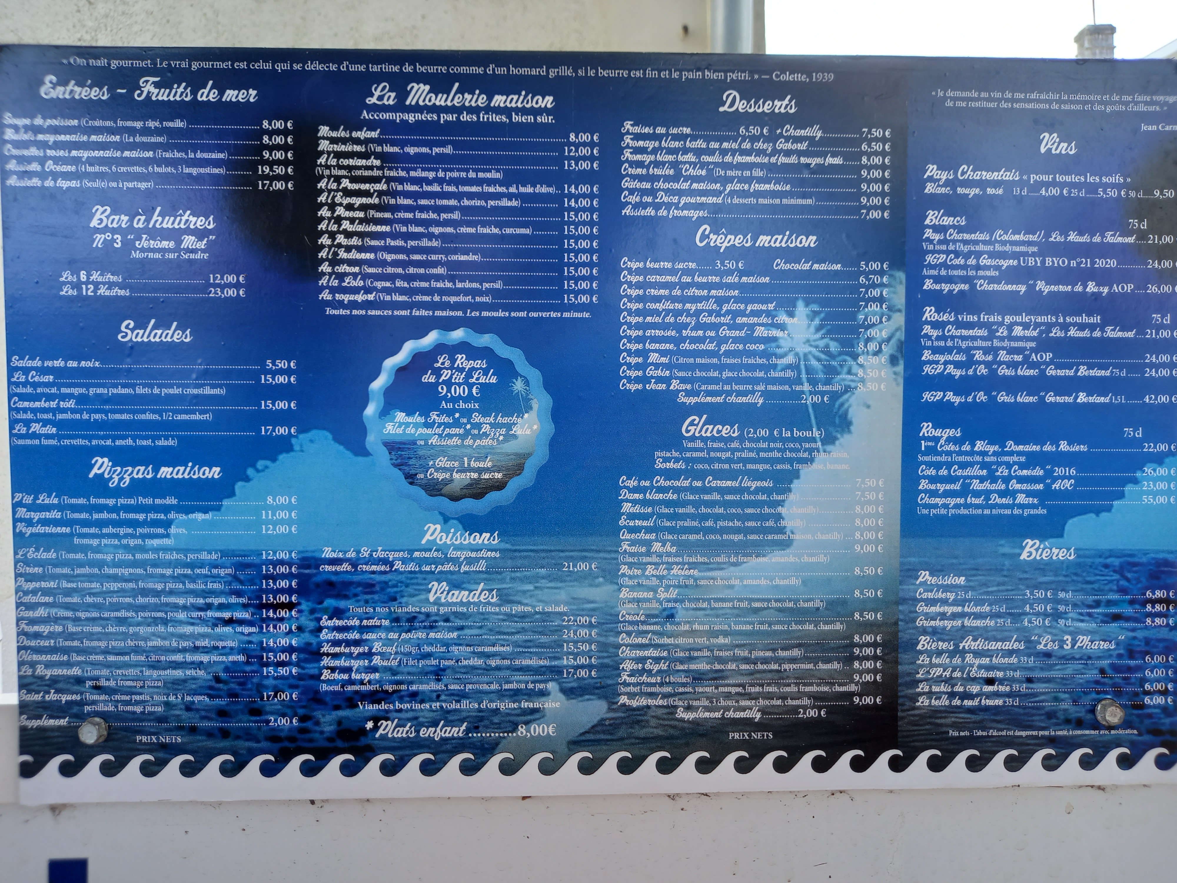 Restaurant sur la plage de Saint Palais. Spécialiste des moules. Personnel top. Prix raisonnables