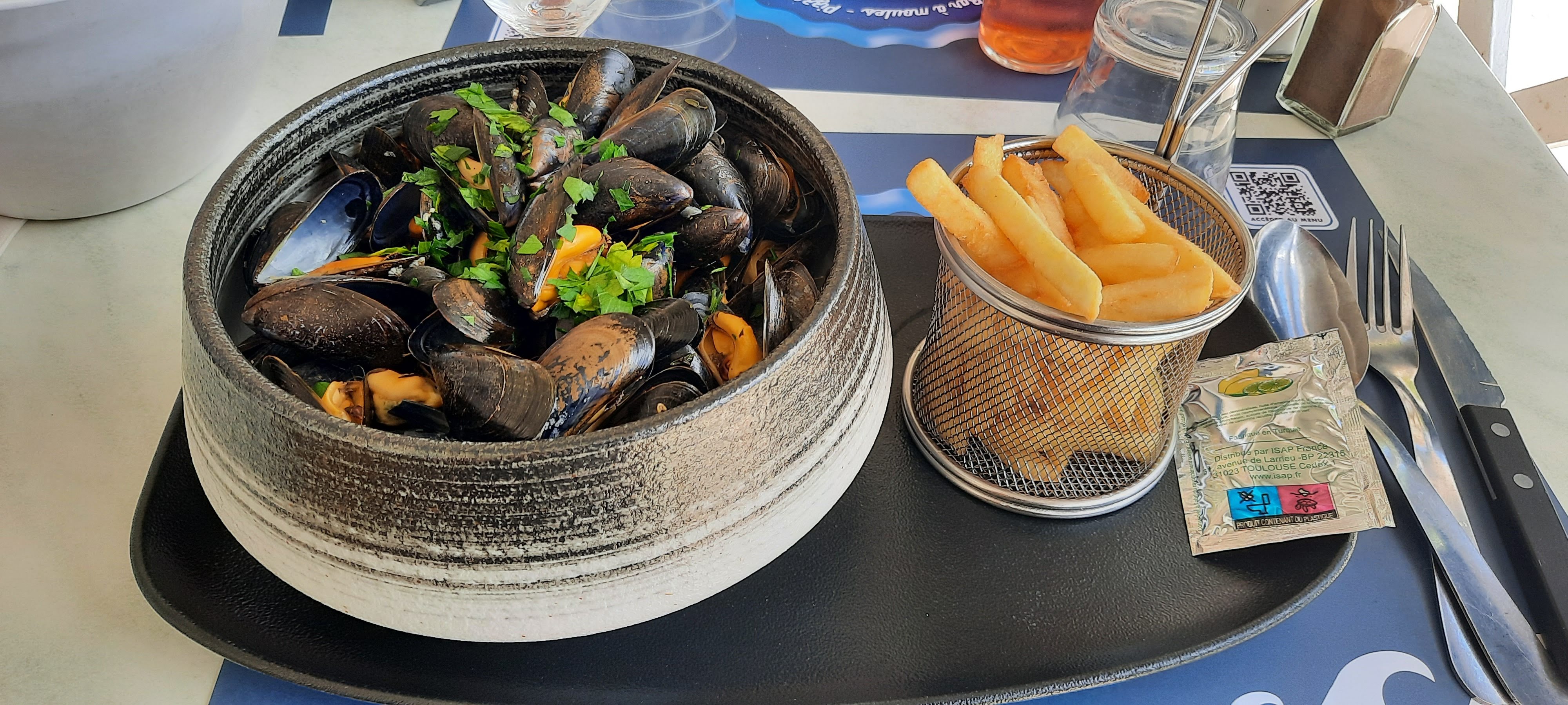 Posté le 20/06/2022 à 19:45"Toujours le.meme plaisir d'aller manger ma gamelle de.moules devant la.plage.du Bureau à St Palais en arrivant de Paris.. Les.frites qu'ils les accompagnent sont excellentes. Par contre je veux bien le café mais.pas gourmand. Avec un quart de rosé j'ai payé 25€"