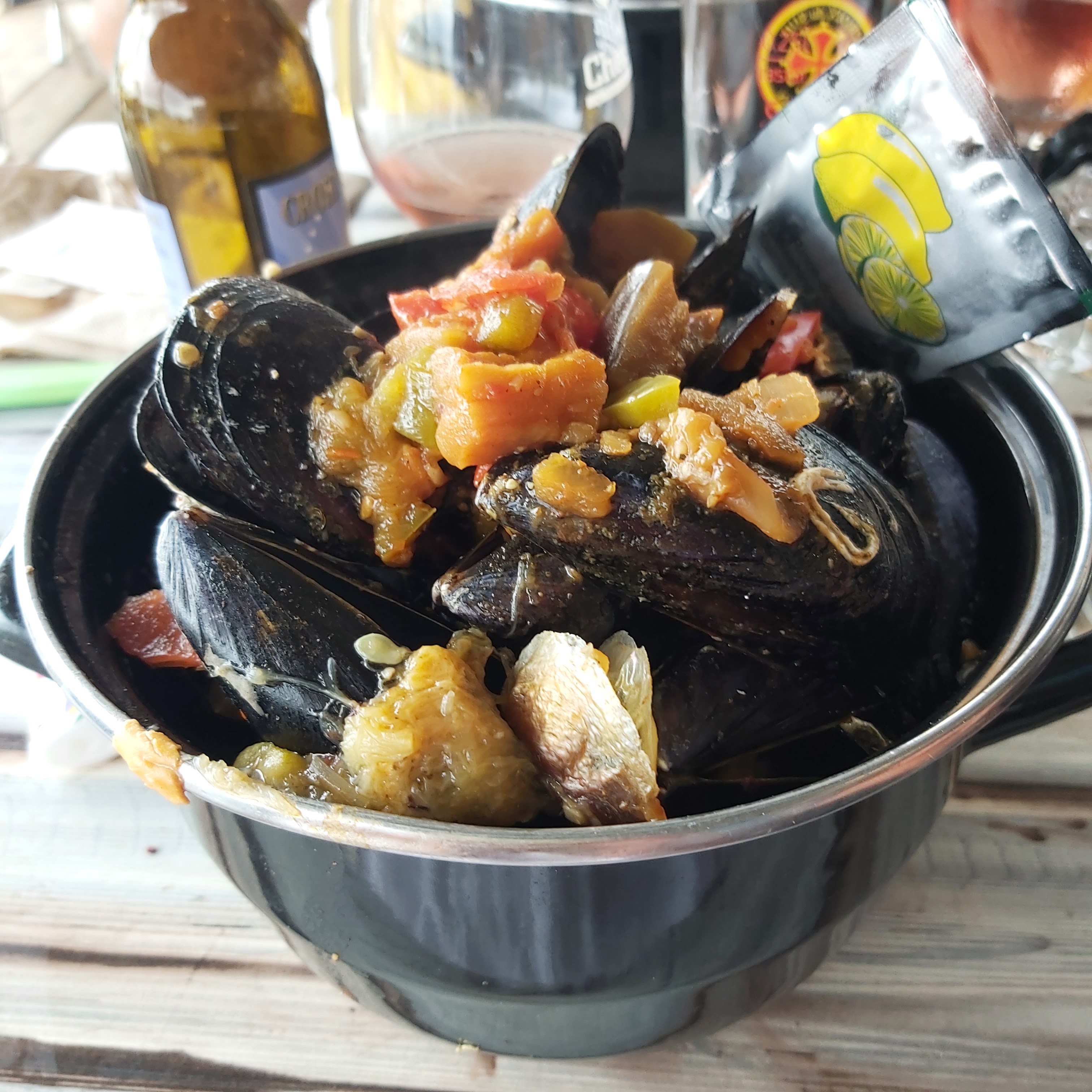 Posté le 05/08/2023 à 04:27"Sur l'étang une adresse à ne pas manquer. La terrasse est un must sur un bras de l'étang de Thau, une machine bien huilée depuis des années le staff est efficace, agréable et souriant. Les moules et les huîtres sont sorties de l'eau 5m plus loin puis juste ouvertes ou gratinées, à l'ail ou au Noilly Prat, apéritif aquí! Un énorme bac plein de moules bouillonne sur des souches de picpoul (très certainement !?) qui flambent tel un bûcher cathare et qui vous annonce une brasucade délicieuse qui sera agrémentée plus tard d'une sauce maison (crème safranée, chorizo, tomates picantes et autres ...). Allez y, qu'est-ce que vous attendez ?"