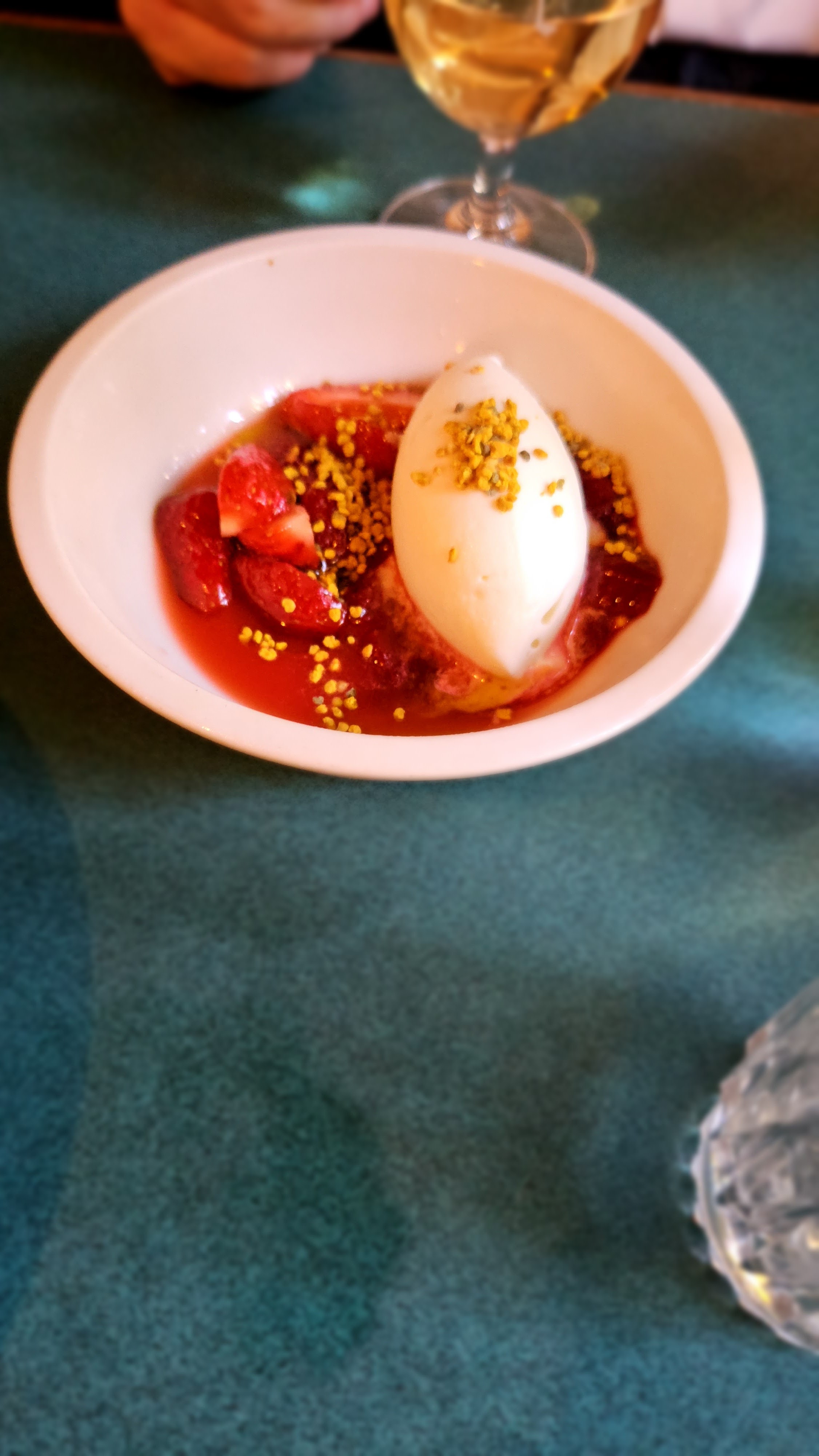 Amandes du Mont Saint Michel (jamais gouté auparavant). Tostada avec de la truite. De superbes associations de goûts. Le pain, le beurre étaient parfaits. Et le vinaigre de coriandre impressionnant. Superbes vins aussi. Et très bon service Je recommande. Ce n’est pas que la petite sœur de Septime où l’on va s’il n’y a pas de places à Septime (spoiler : quasi impossible à avoir)