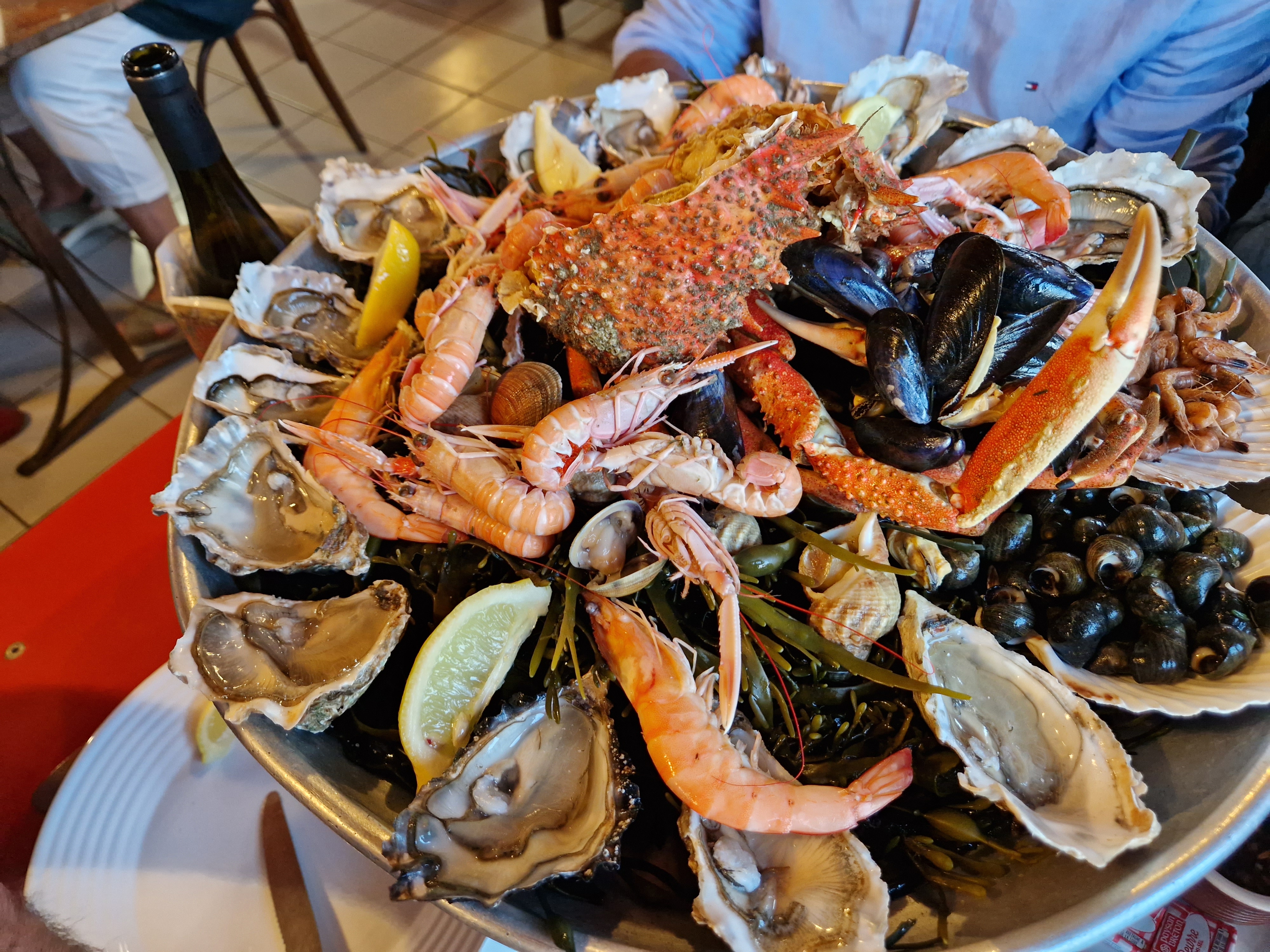 Super plateau de fruits de mer pour 2 personnes. Absolument délicieux. Personnel très gentil. A refaire lors d'un séjour dans le Morbihan.