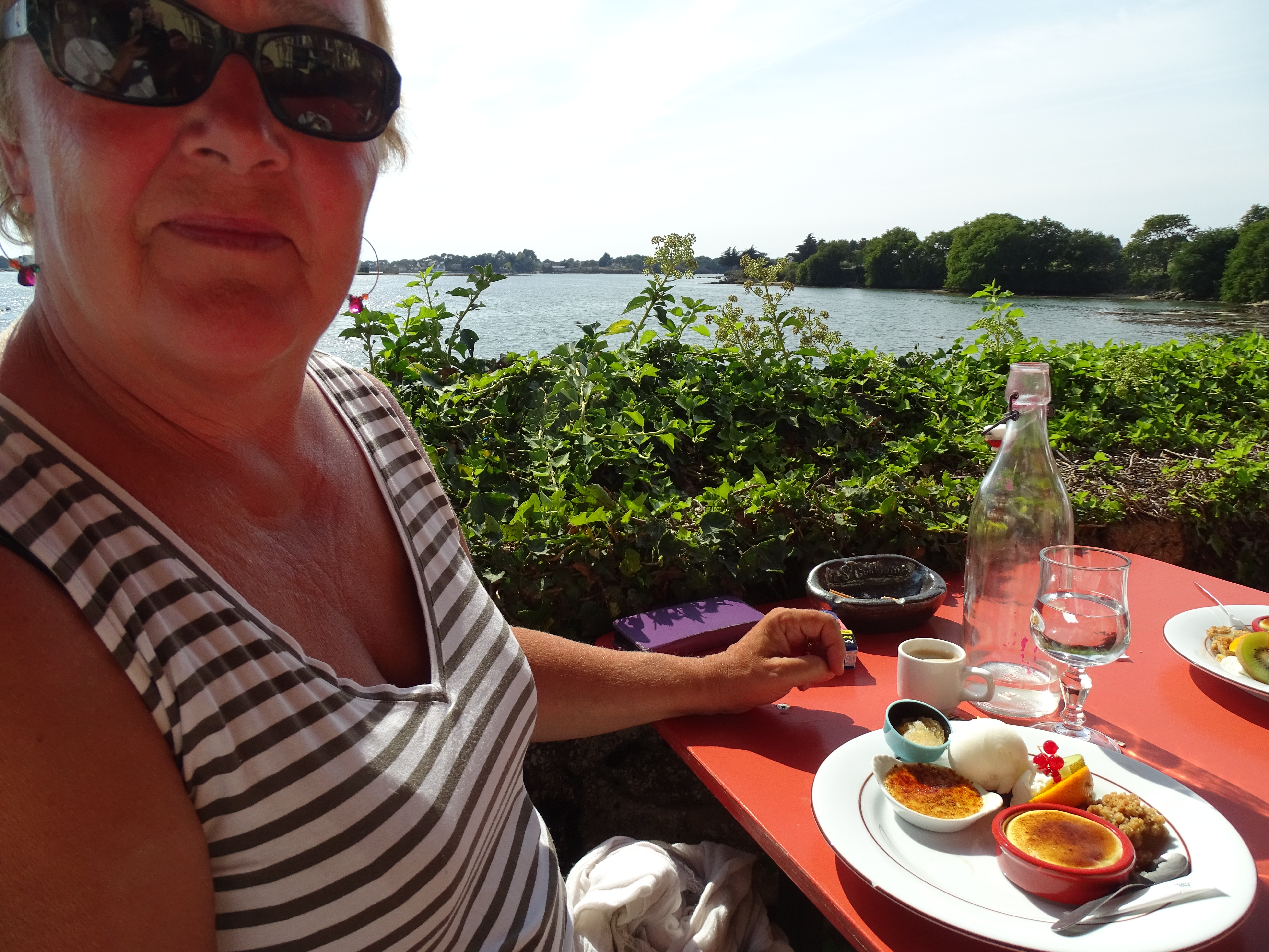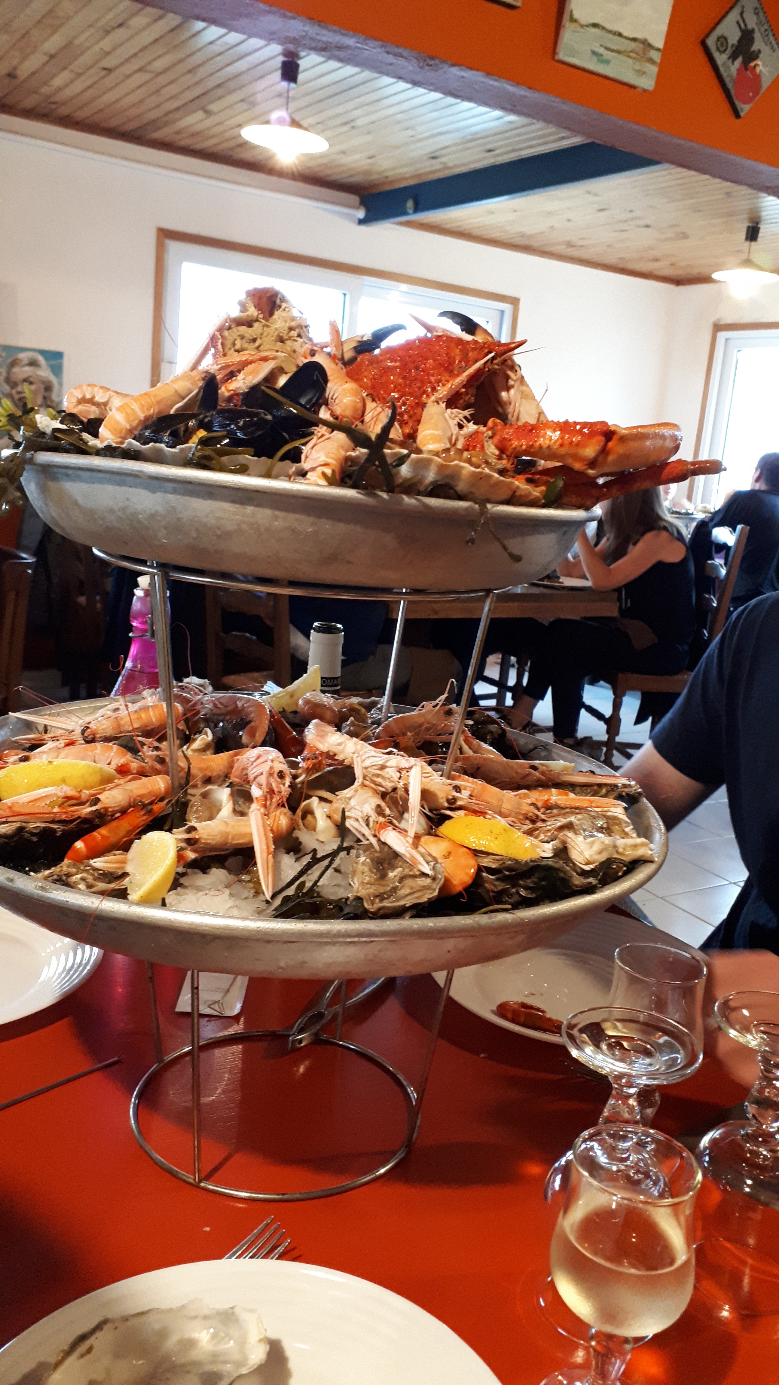Plateau de fruits de mer en terrasse avec vue sur la mer... Le bonheur. Ha j'allais oublier, le crumble est légendaire.