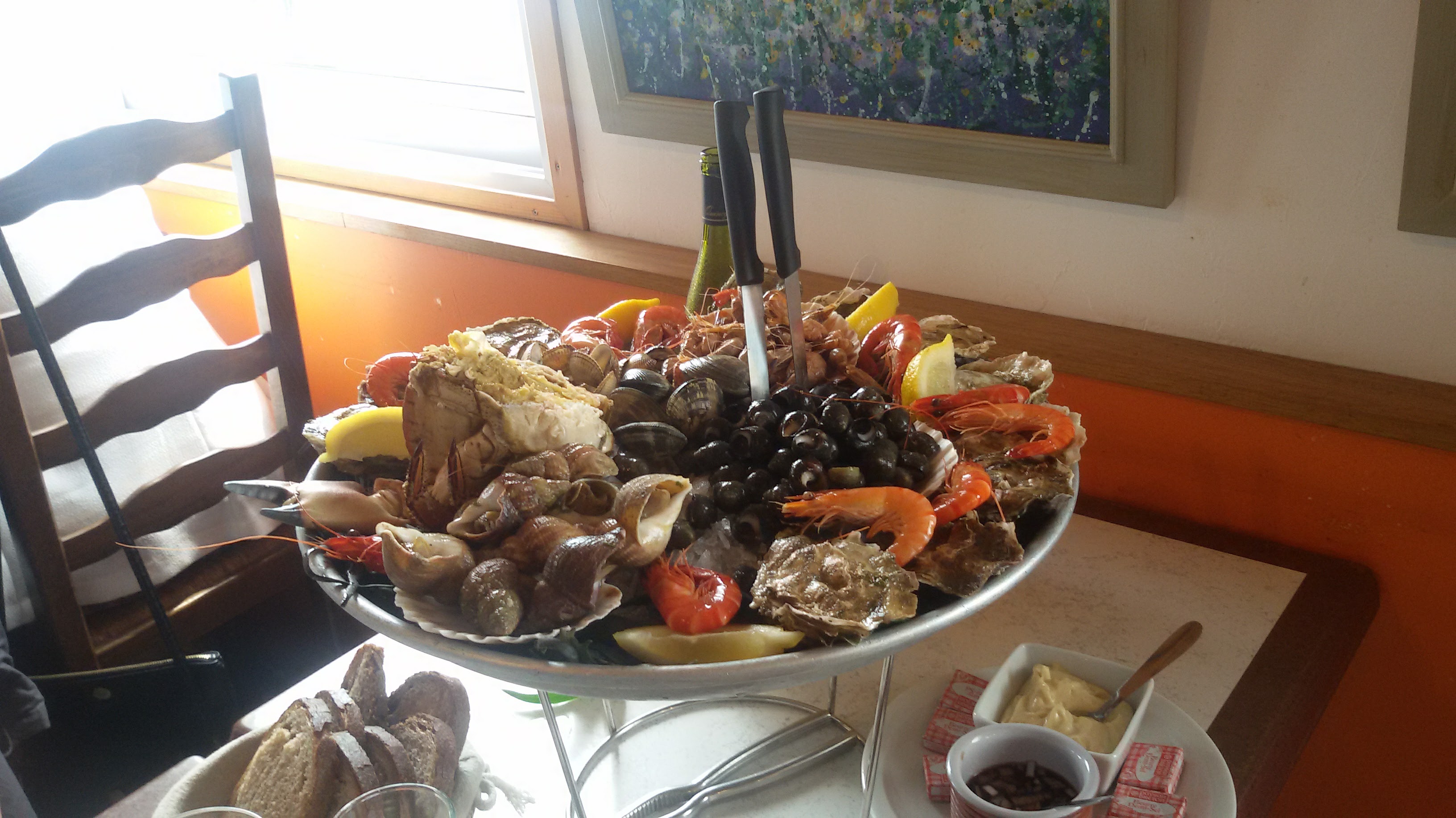 Plateau de fruits de mer très bien garnie. Très belle vue