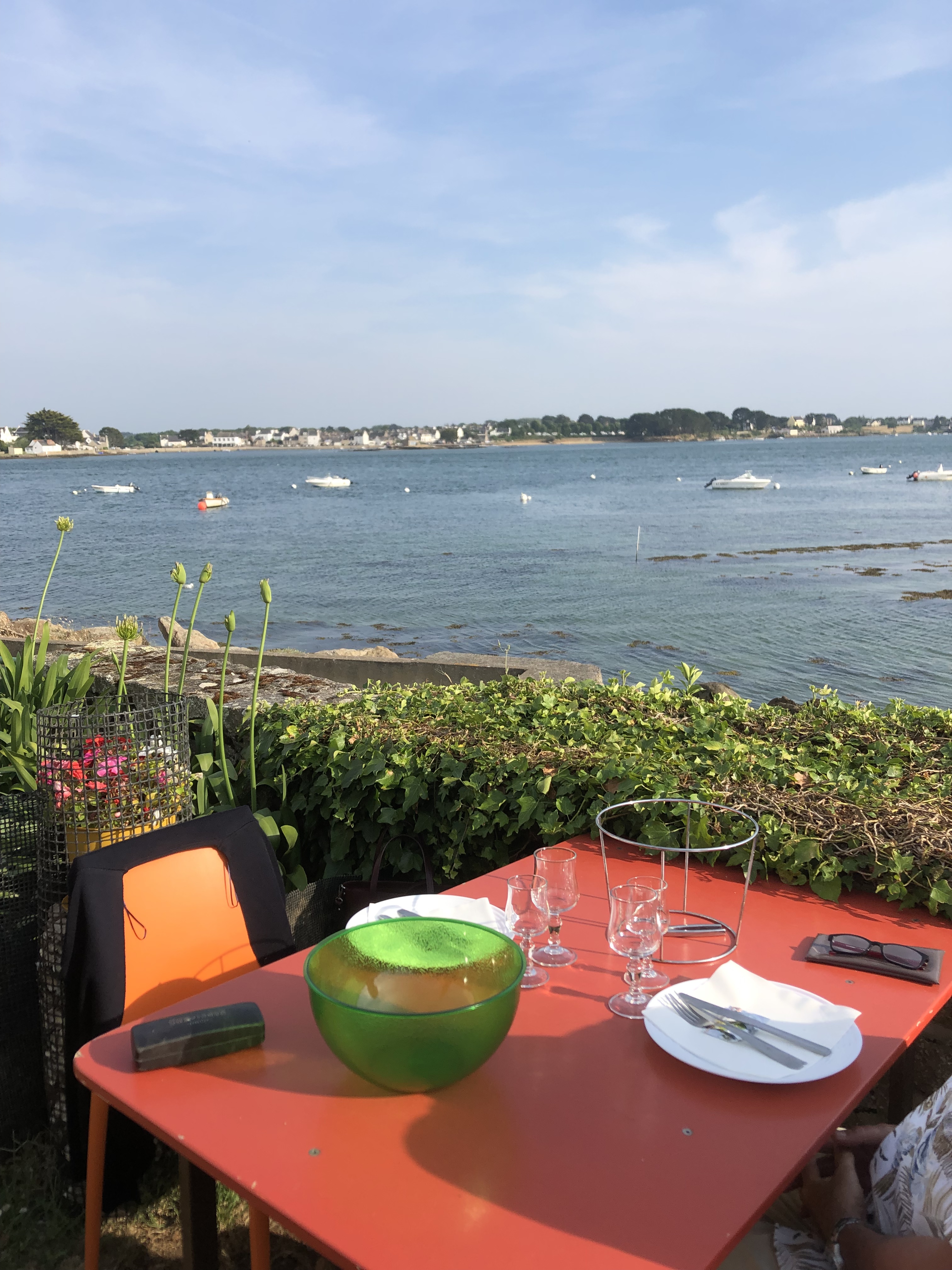 Une vue superbe sur l'île de Saint-Cado,sa petite maison et la Ria d'Etel. Un plateau de fruits de mer bien servi et un café vraiment gourmand. Un service d'une gentillesse qui fait plaisir. Bref, il faut vraiment aller dans ce petit bout du monde... mais en réservant! C'est impératif!