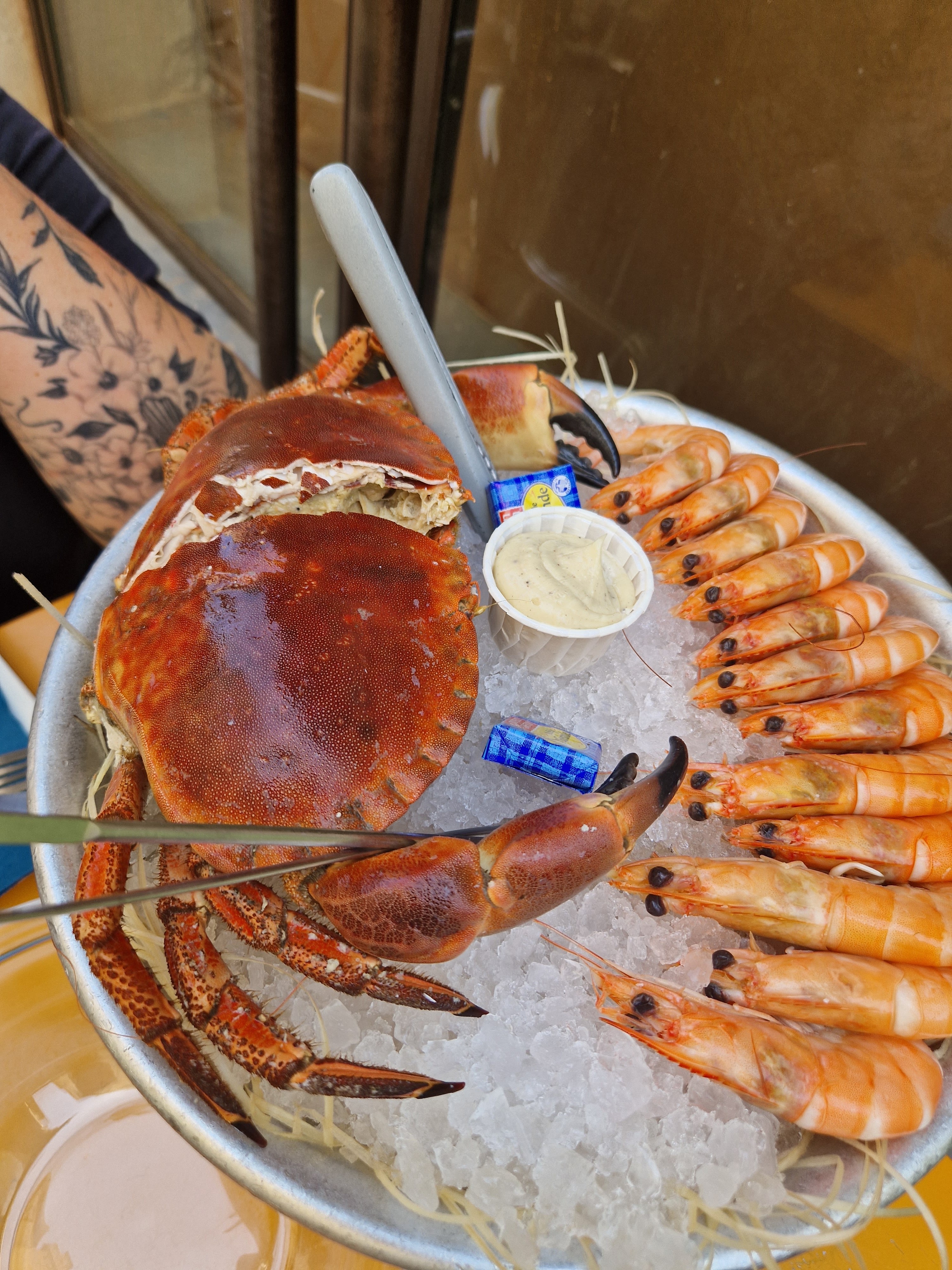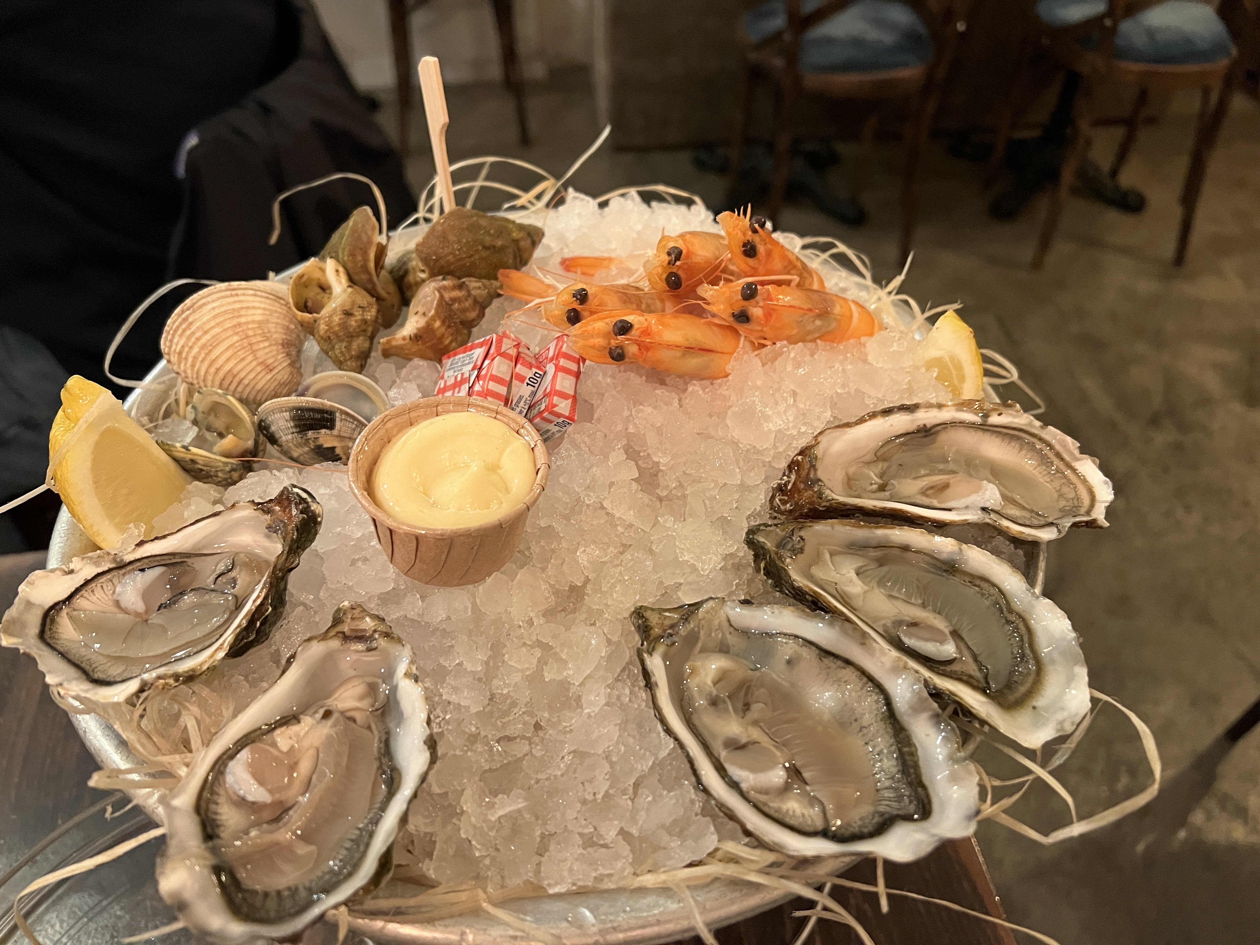 Nous avons commandé un plateau d’huîtres et de crevettes, c’était frais et excellent le tout dans une petite rue charmante, à refaire !