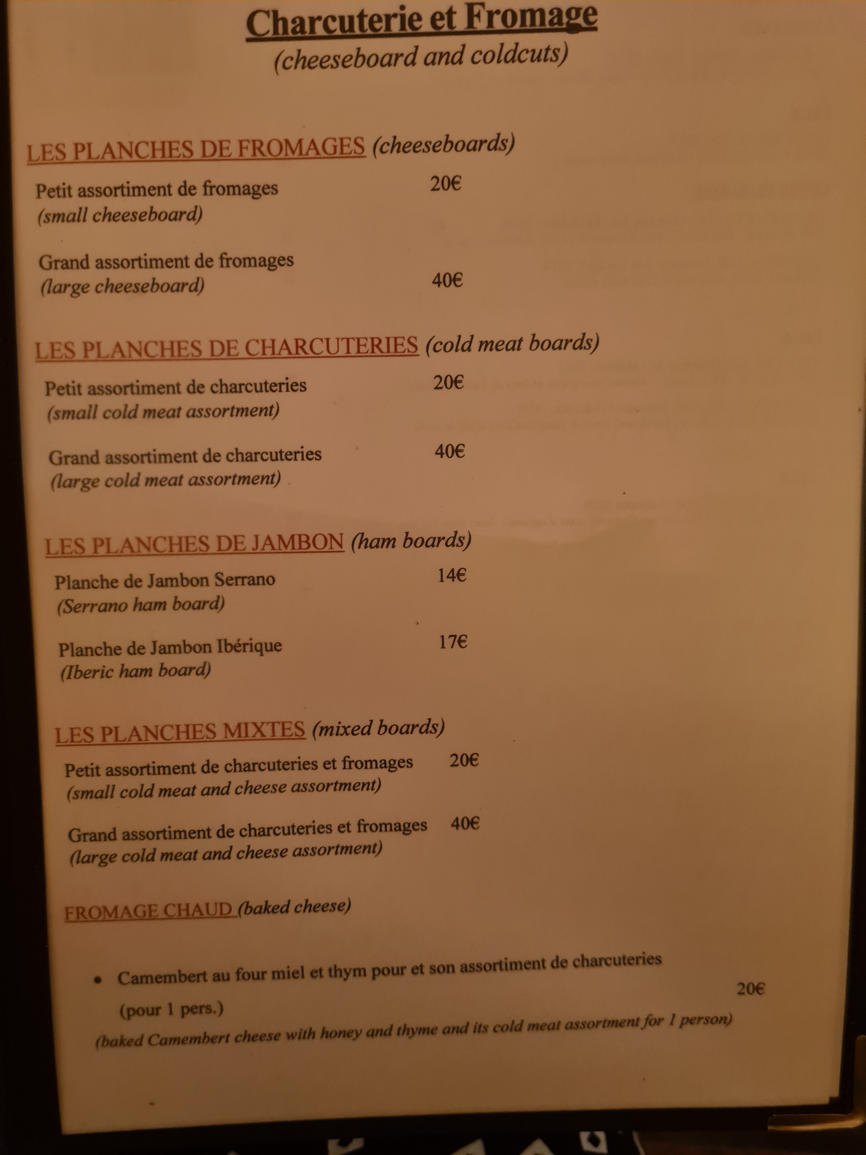 La charcuterie et le fromage sont excellents et de très bonne qualité. Les prix sont par ailleurs très corrects.