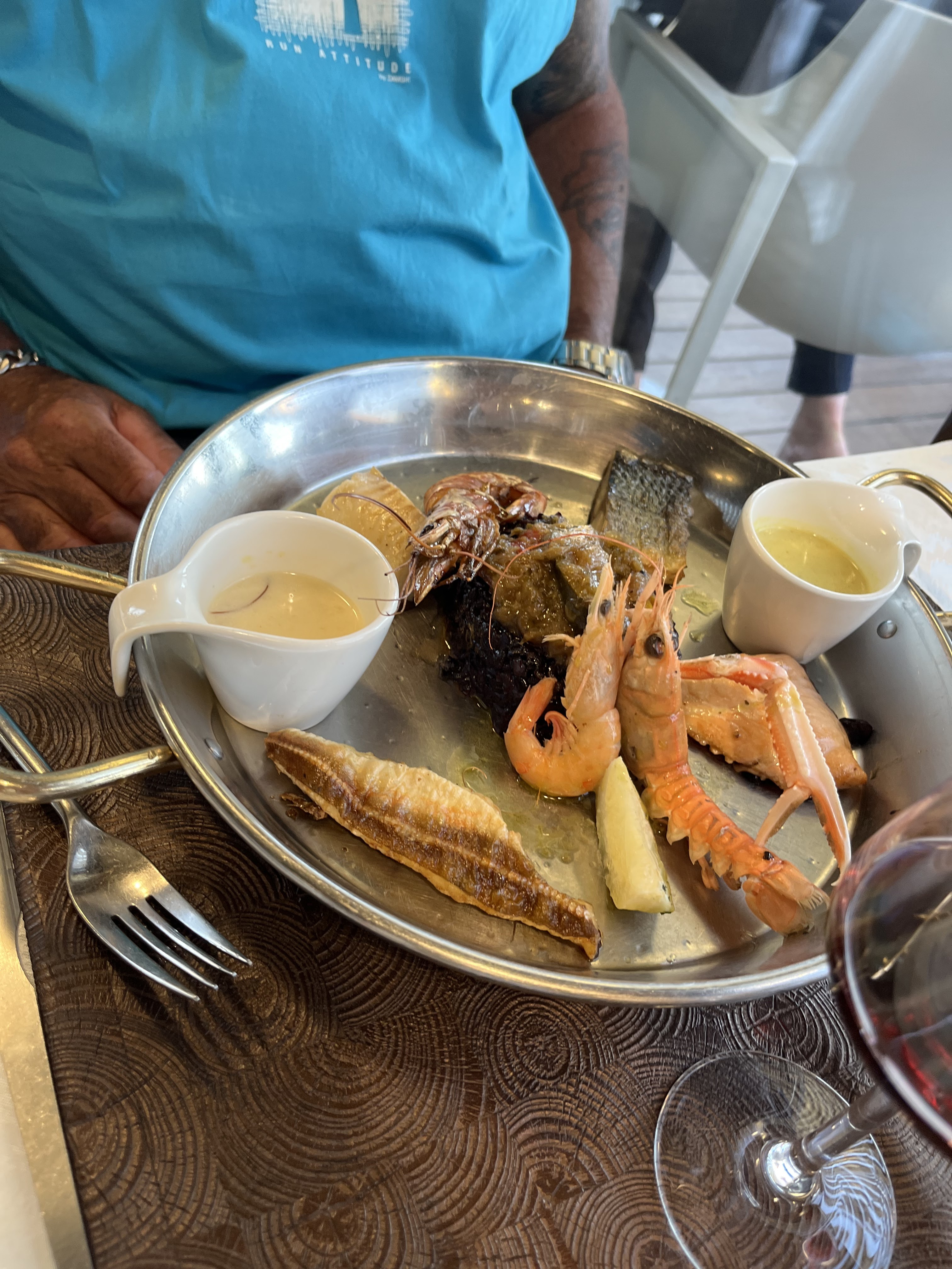 Ça s’améliore! Après y être allé au 15 août pour un anniversaire ou c’était vraiment froid, pas bon ni beau! surprise cette semaine de voir de l’amélioration dans les assiettes. Déjà ça fait moins cafétéria qu’en pleine saison, les plats restent assez basiques mais tous étaient bons et beaux et servis en un temps record, peut être un peu trop vite pour nous qui profitions de la vue sous un soleil généreux. On revient a la Toussaint 😉