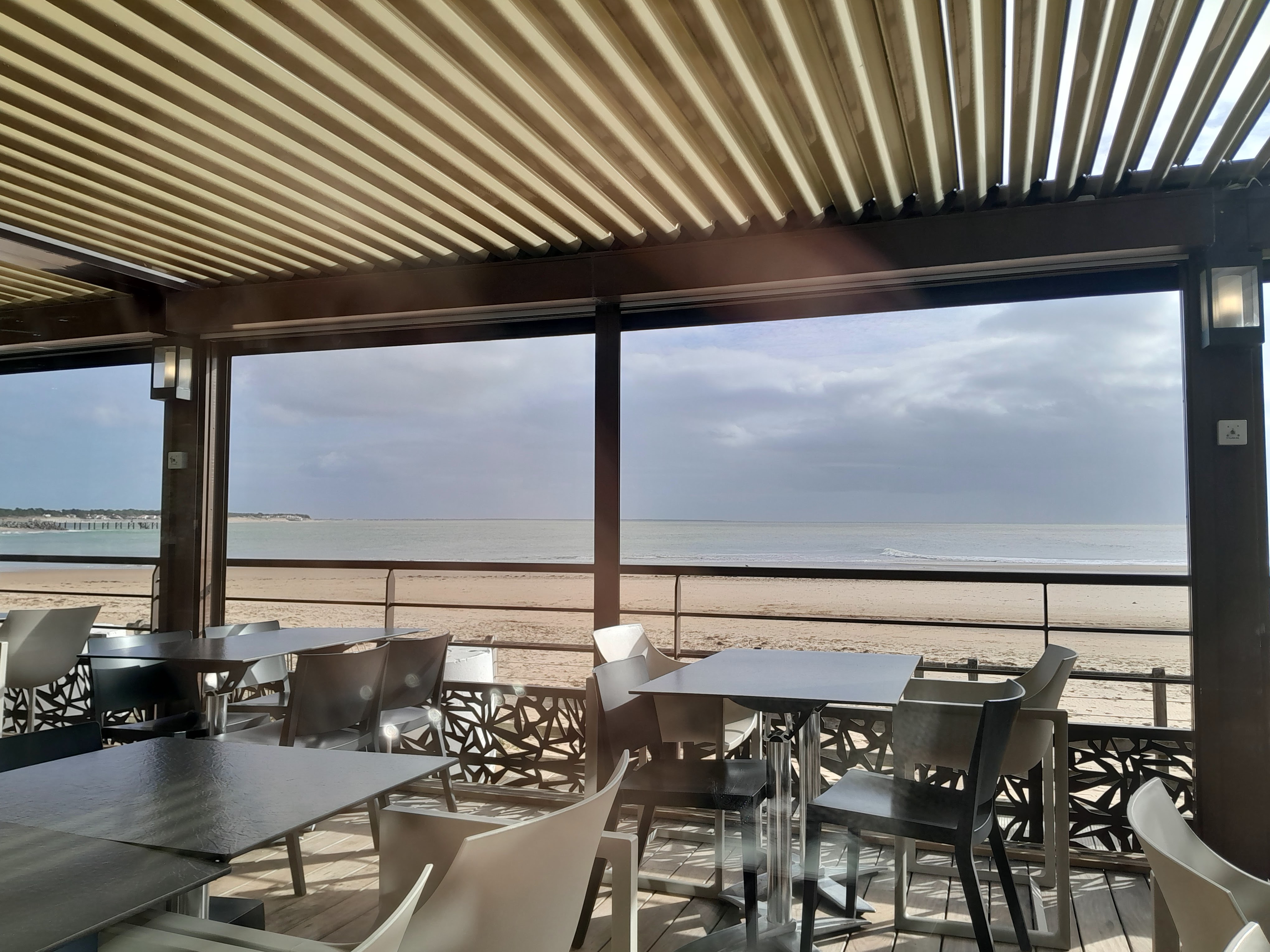 Restaurant incontournable de la Tranche sur Mer que nous visitons chaque année pour un dîner en terasse. Face à l'océan sur la plage centrale, le cadre est idéal ici. Cependant au fil des années je trouve que la qualité des repas baisse (tant en choix, qu'en produits). Nous repartons un peu déçu cette année, le dîner n'étant pas du tout à la hauteur du prix pratiqué. Fait rare, mais nous n'avons pas goûté le vin, la bouteille est posée sur la table ouverte et notre serveur disparait. Correct dans l'ensemble, mais plus 1u niveau du standing d'il y a quelques années. NB : si vous n'aimez pas le poisson et les produits de la mer, les choix dans le menu so.t drastiquement réduit. Mais après tout, on est en bord de mer, autant manger local.