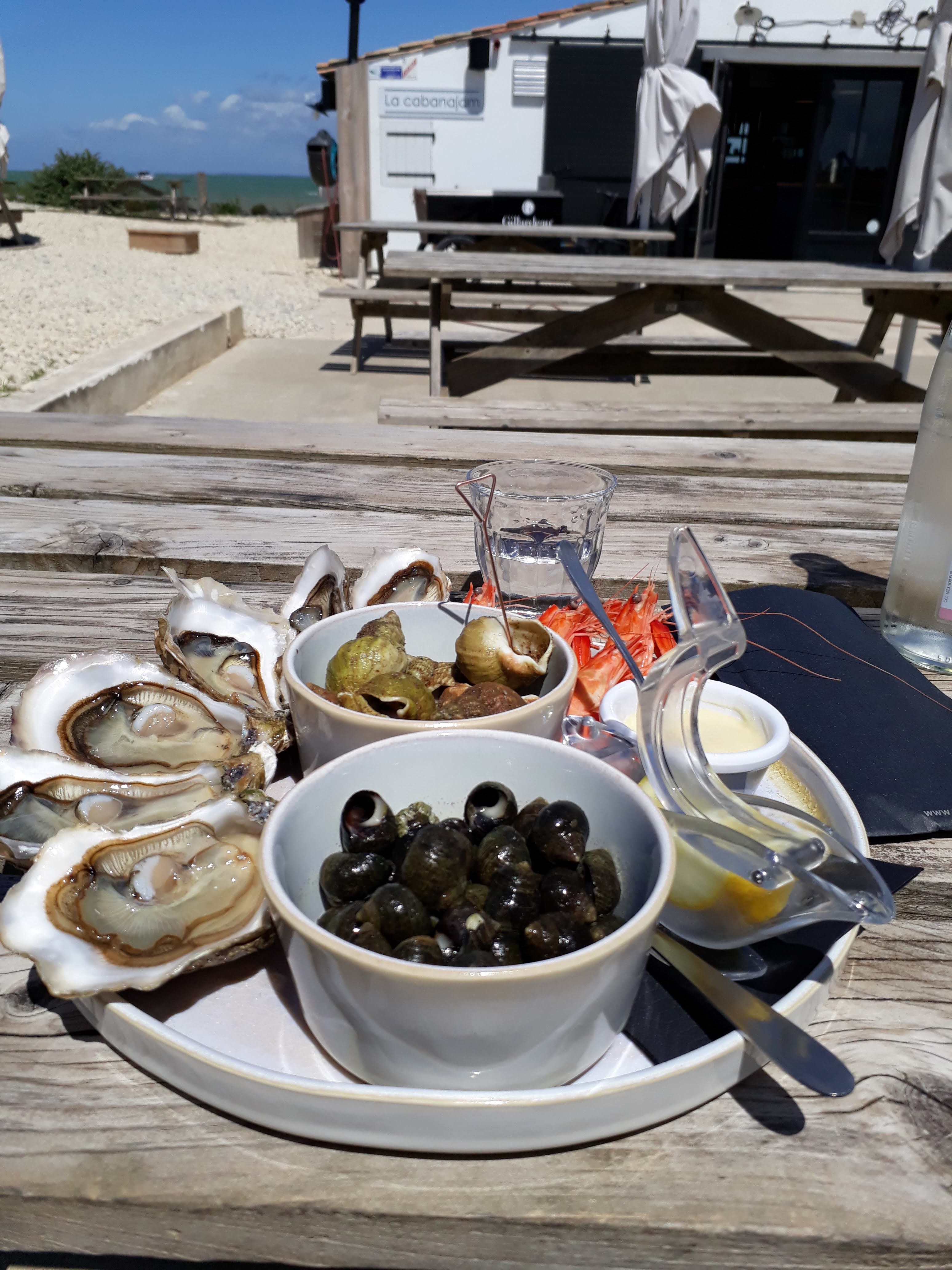 Très belle expérience ce mardi après midi à la cabanajam. Dégustation d'huîtres face à la mer accompagné d'un petit vin Blanc de l'ile de Ré. Je recommande ;)