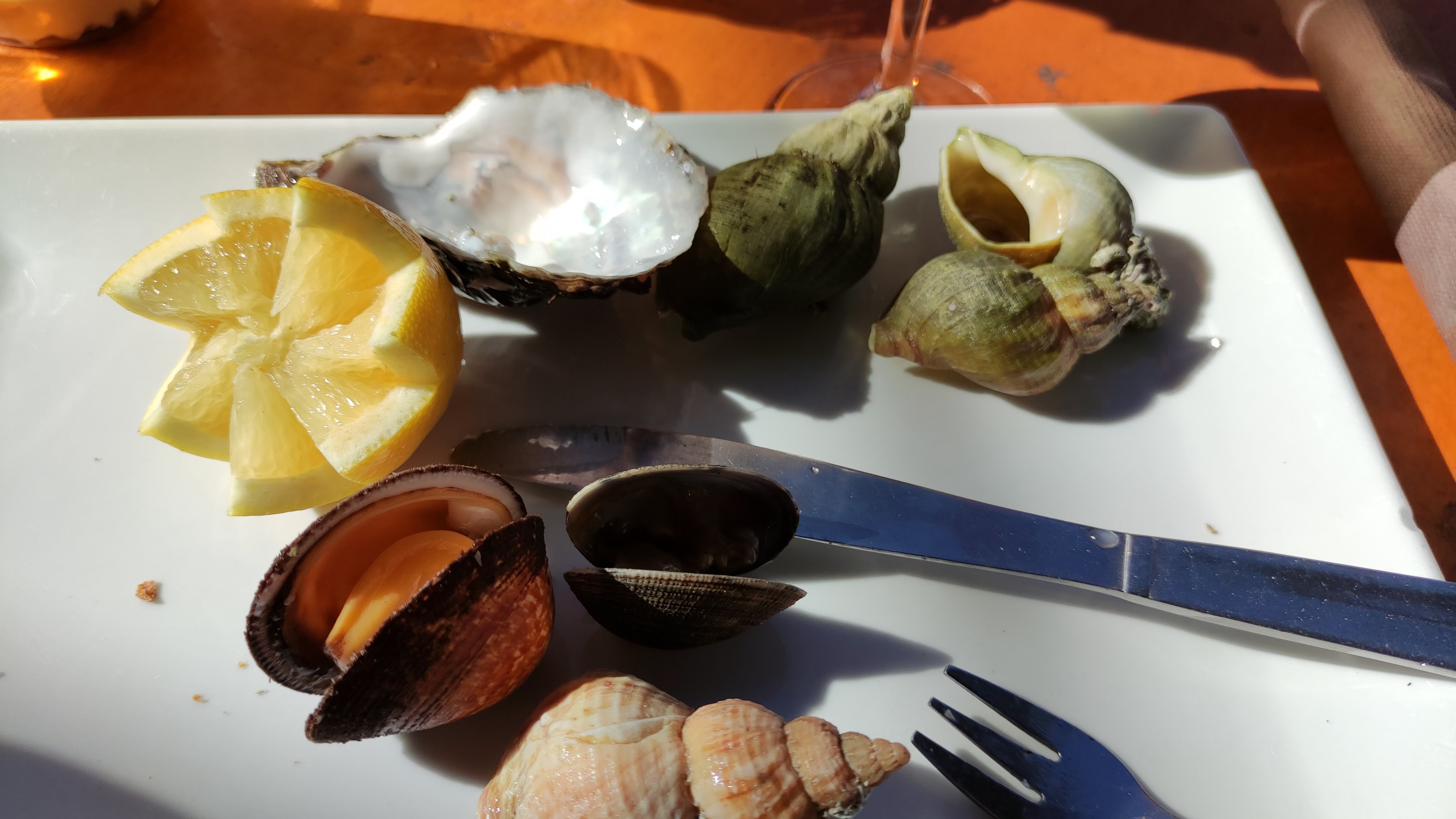 Hier à midi nous avons récupéré un plateau de fruits de mer que nous avions commandé la veille. Les huîtres, les moules, les crevettes et les escargots étaient excellents et merveilleux. Toujours mon plaisir.