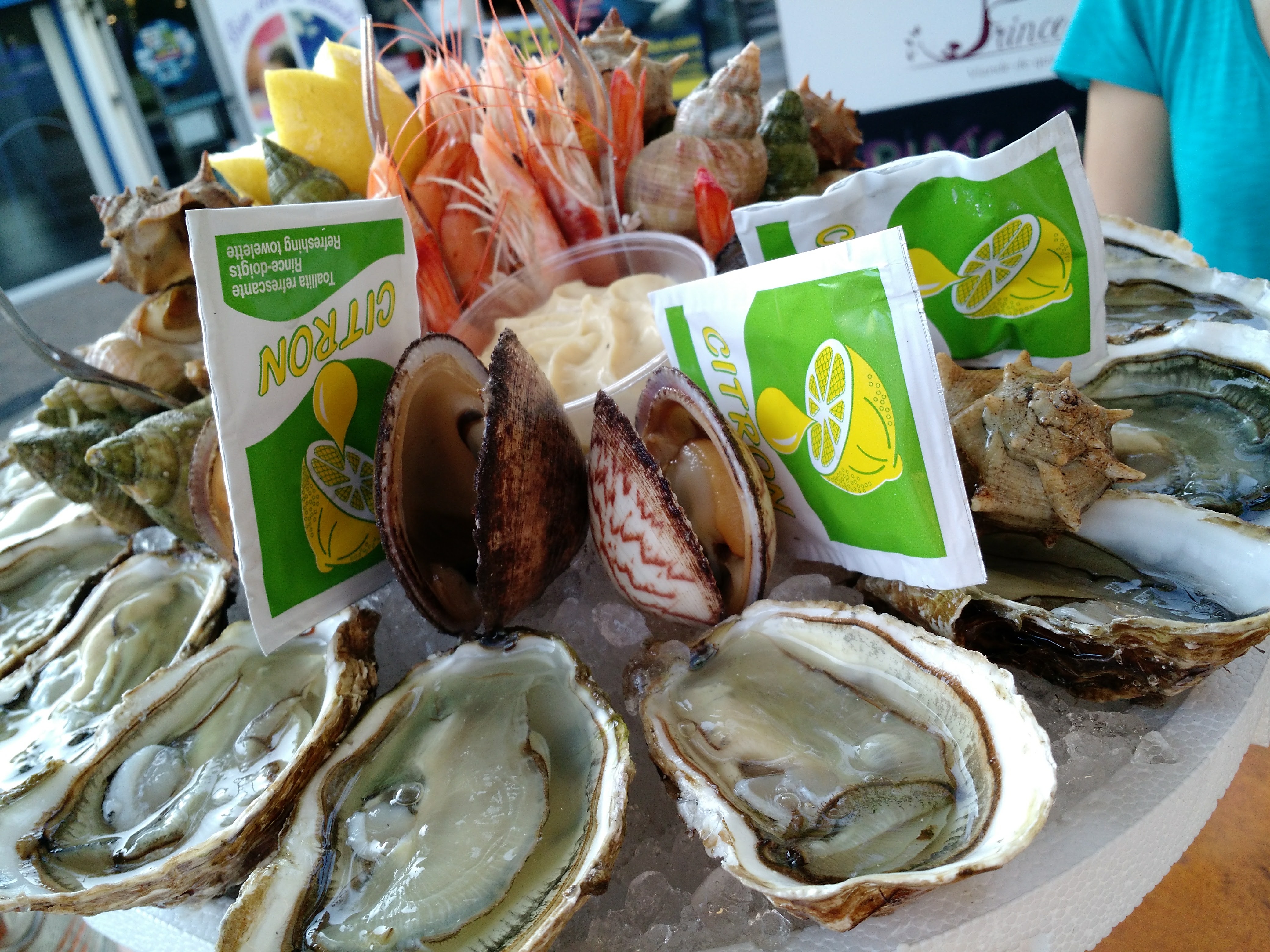 Très bons fruits de mer, bien ouverts, beau plateaux à emporter pour déguster à bord avec un Picpoul ***!