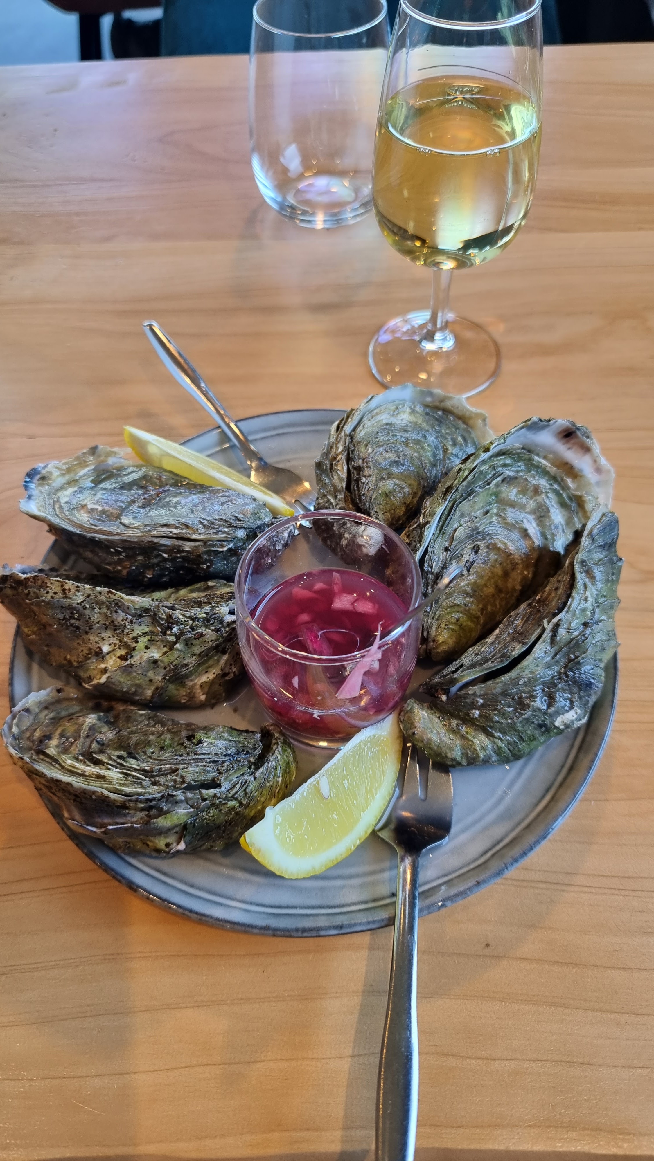 Tout était parfait, huîtres, plat du jour et dessert. Personnel agréable, ambiance chaleureuse. TRÈS SATISFAISANT, je recommande