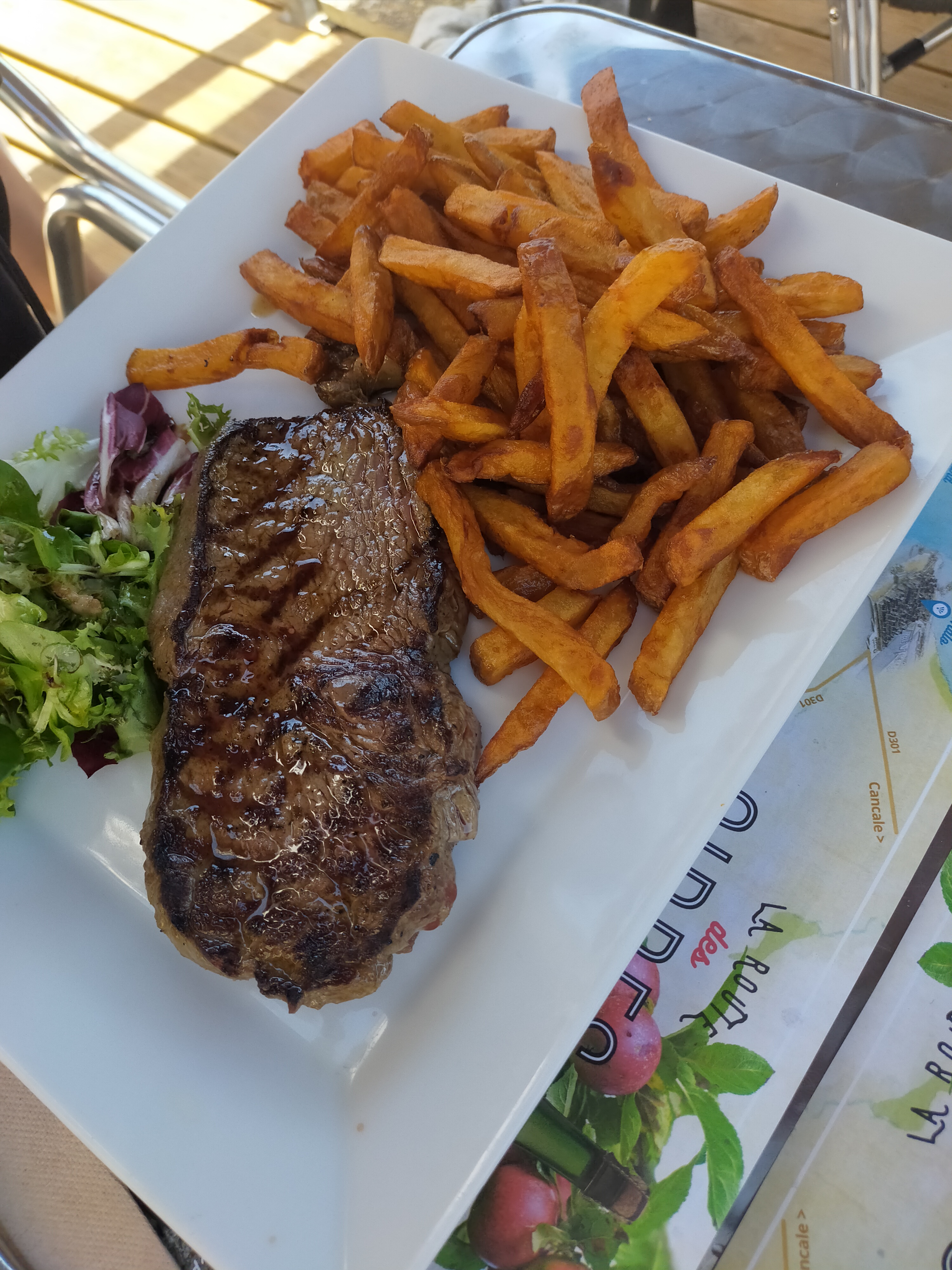 Posté le 27/08/2022 à 21:25" Belle terrasse, bonne nourriture et service sympathique "