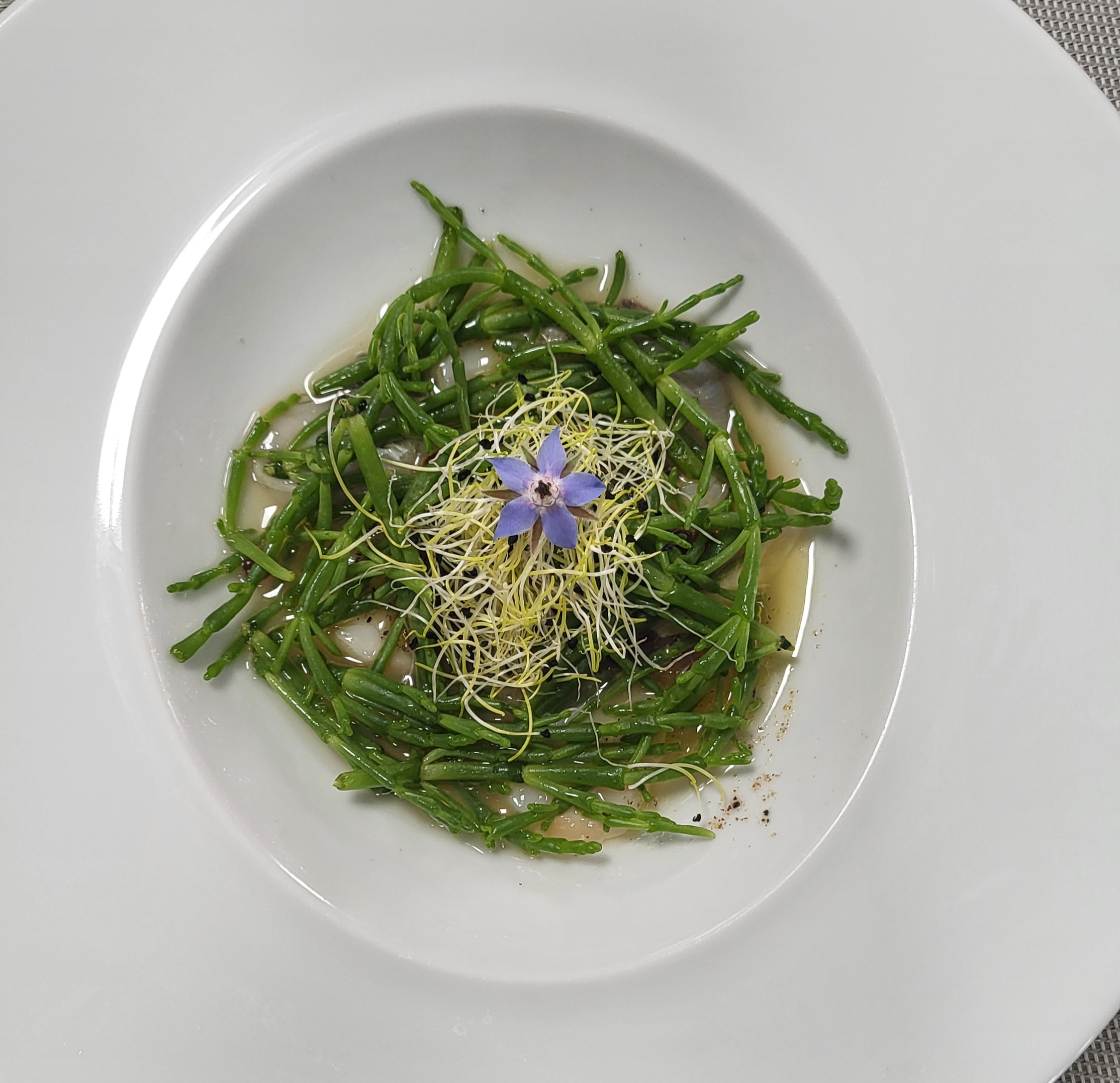 Posté le 20/08/2024 à 16:18"Nous sommes rentrées dans ce restaurant, avec mon amie d'enfance, par hasard. Nous n'étions pas pressées. Le repas un pur régal, notamment la salade huîtres, coquilles St Jacques, salicorne. Un lieu calme, tranquille et gentillesse de la propriétaire. Cela a contribué à une excellente journée. Nous reviendrons. Merci madame pour votre accueil et au chef de nous avoir régalé."