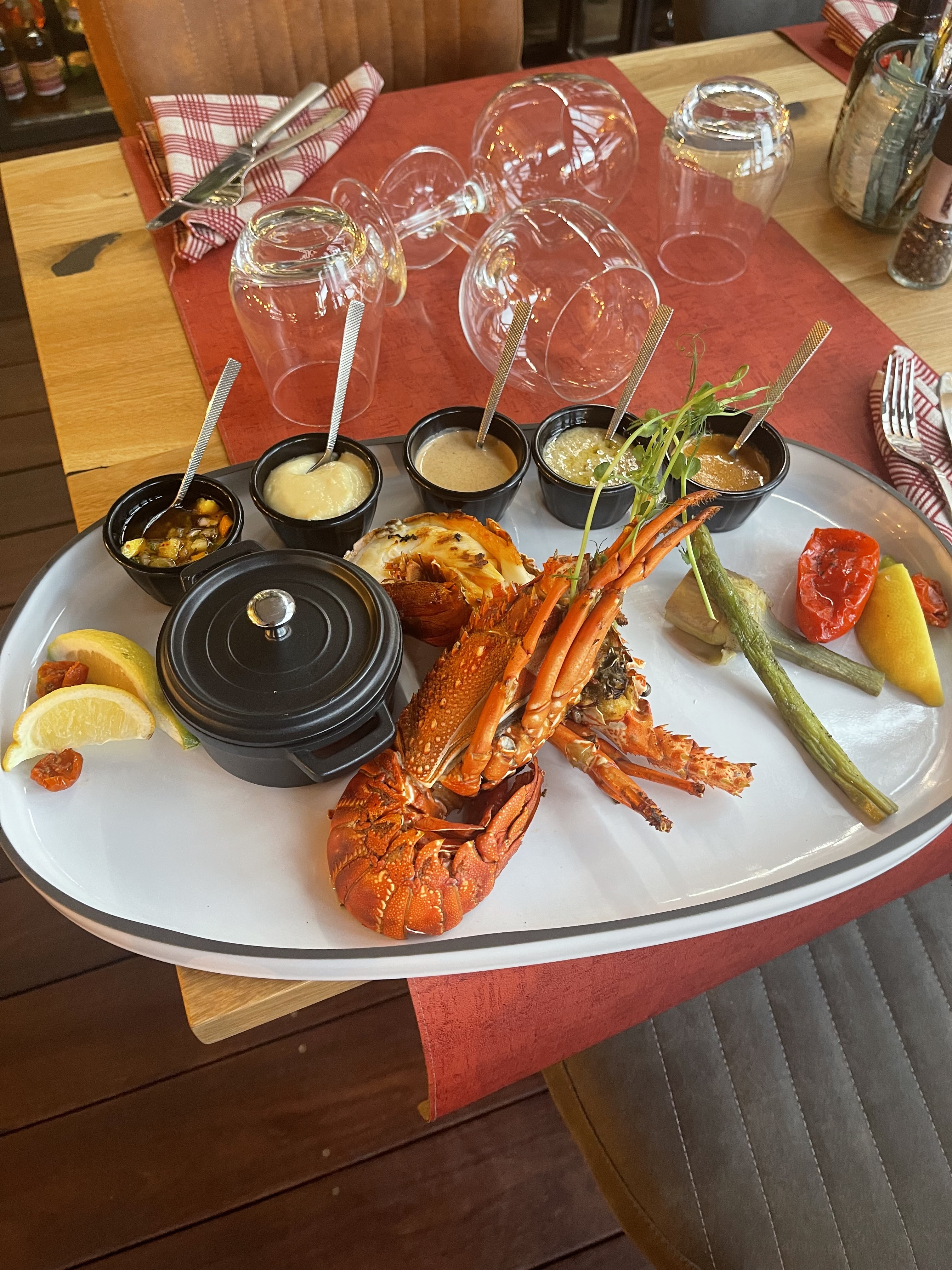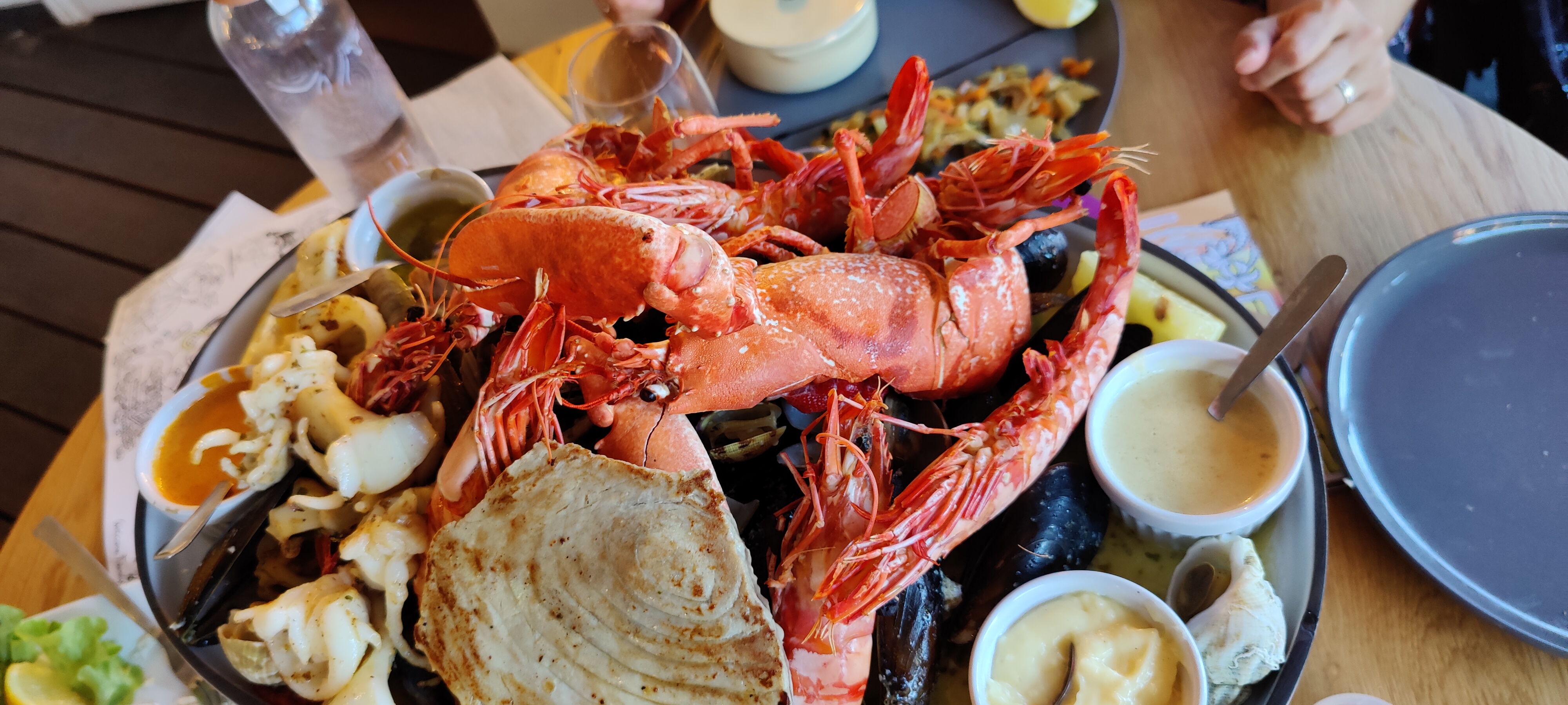 Un peu déçu de notre passage.cocktail assez grossier avec beaucoup de glace.carpaccio de saint jacques assez fade et des assiettes moyennement garnies.demi homard bleu avec pas grand chose à manger a 32 euros... Serveuse très agréable et cadre agréable.j'ai trouvé le rapport qualité prix élevé.