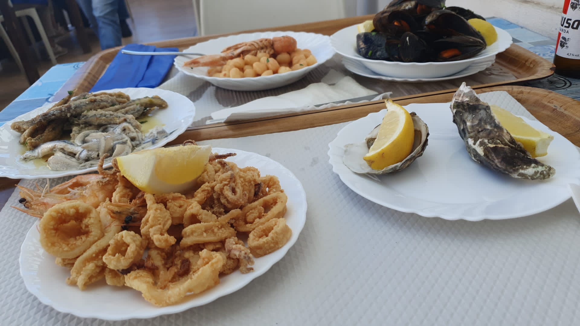 Acceuil sympathique mais plats vraiment très moyens. Nous avons pris le fritto mixto trop peu cuit et servi froid sans sauce, et des moules frites avec frites pas assez cuites. La mayo industrielle pour un restau de poisson et fruits de mer, pas dingue et plus d'aïoli en stock. Dommage...