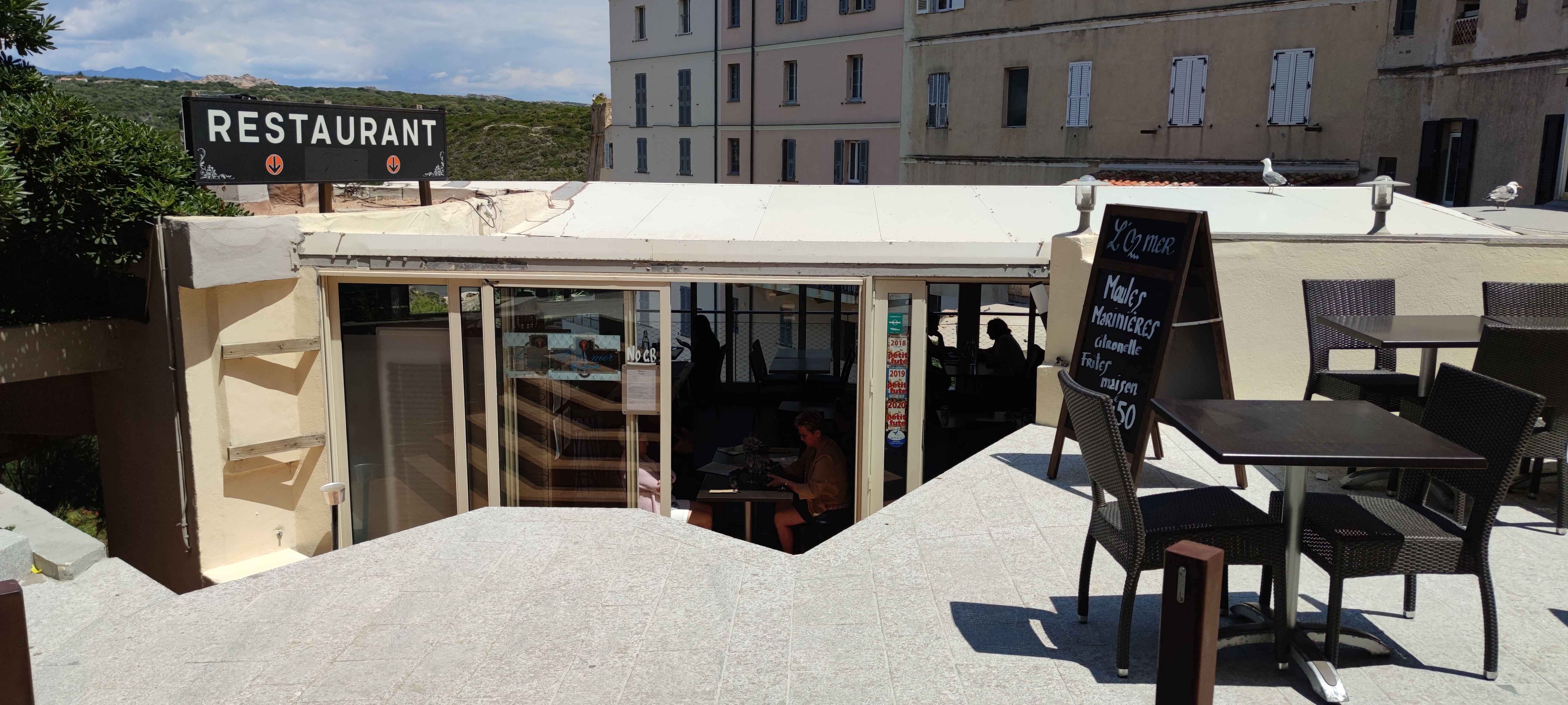 Bonifacio ??? Un restaurant qui vous prépare des produits frais et locaux au rapport qualité prix tout doux ?? Ne cherchez pas plus loin, LA bonne adresse c'est bien chez l'o2 Mer Seafood. Poissons venus tout droit des pêcheurs bonifaciens à quelques centaines de mètres, fromages de Sant'Amanza à quelques kilomètres, frites réellement 100% maison tout comme les desserts du moment, ou les glaces d'un artisan glacier de la Cité... Laissez vous tenter par le Fritto Royal (friture de divers poissons de la pêche du jour) ou le merveilleux Burger Terre Mer à l'encre de seiche. Des plats généreux aux saveurs authentiques, un accueil chaleureux et attentionné, et cerise sur le gâteau : une vue panoramique imprenable sur la magnifique entrée du port de Bonifacio. Que dire de plus ?? Si vous manquez cette halte repas et convivialité..il vous faudra revenir à Bonifacio.