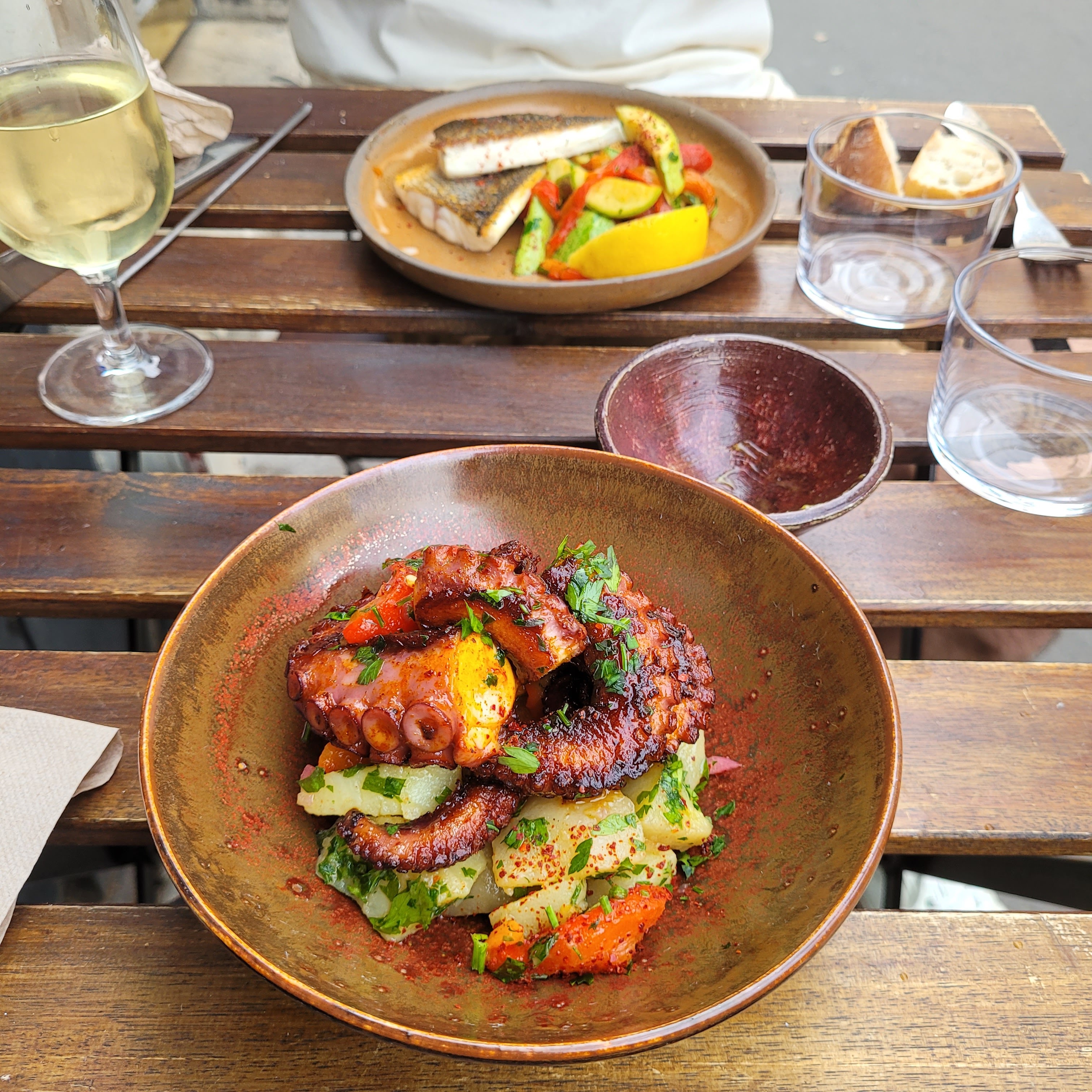 Que dire de cette adresse à part que nous nous sommes régalés. Les couteaux, le poulpe, le bar étaient frais et parfaitement cuisinés tout en laissant place au produit.