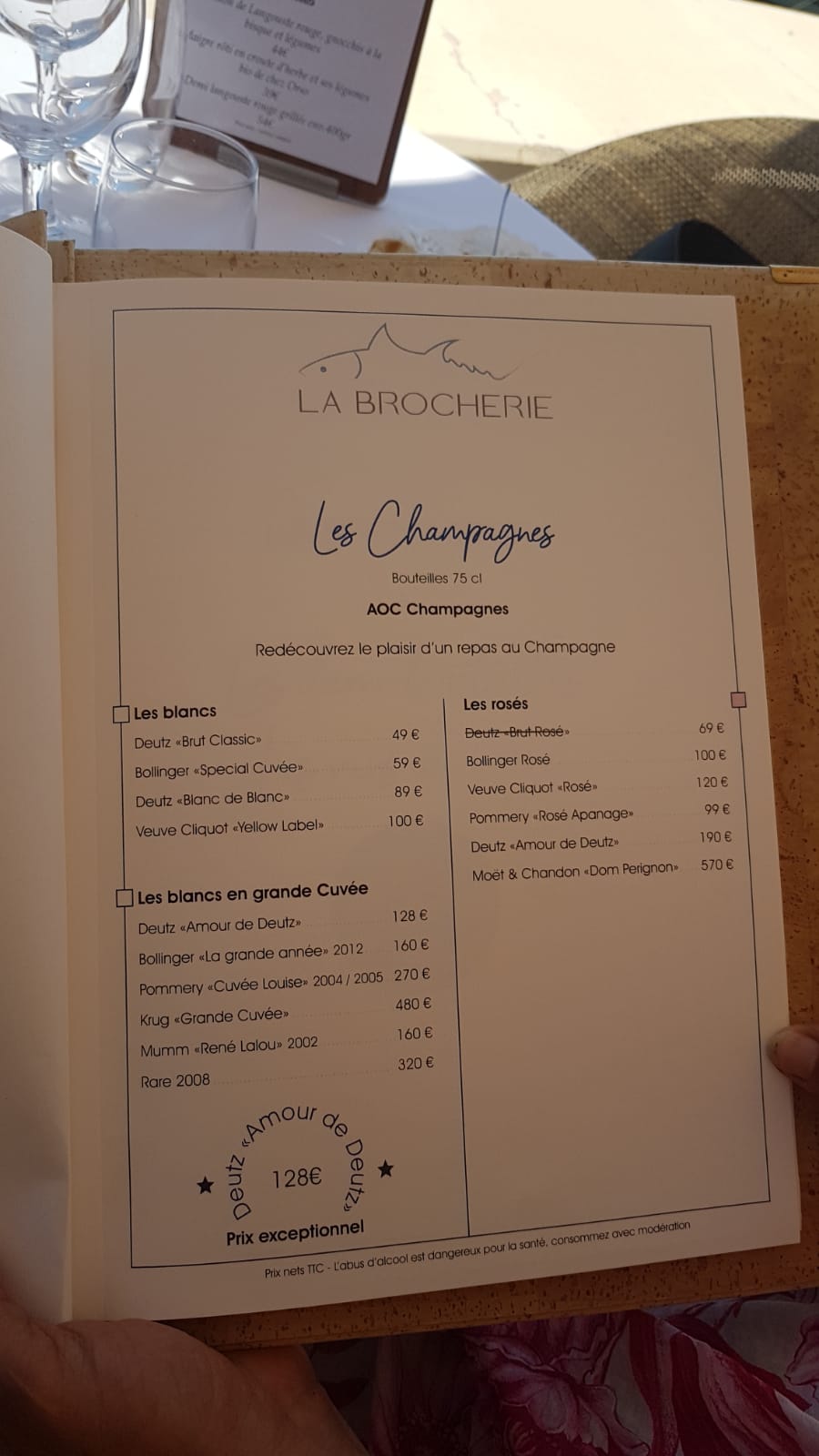 On connaît La Brocherie depuis,1991, nous y allons 2/3 fois par an et c’est toujours fabuleux ; le poisson est remarquable, le service très professionnel;, les prix des champagnes exceptionnels (59 euros le Deutz et 89 le Bolinger). Une adresse incontournable et incomparable sur la côte