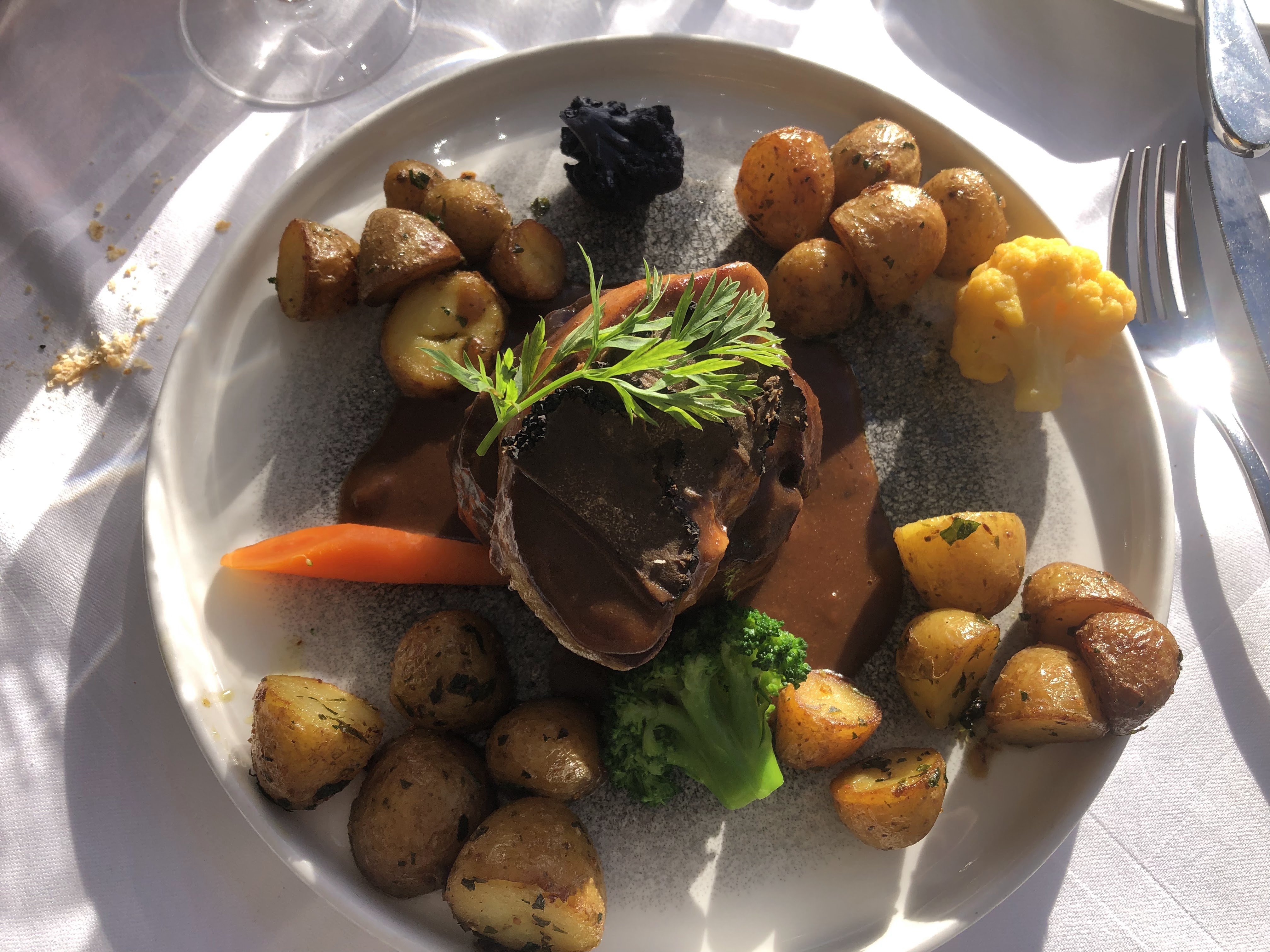 Posté le 14/11/2023 à 12:43"Excellent repas...très copieux..fin et délicat. Je suis réconciliée avec les poulpes et les calamars! Bar en croûte de sel délicieux et sa purée aux truffes mémorable ! Service par Jimmy impeccable avec 1 timing 👌! A refaire ! Il faut cependant compter avec 1 peu de vin env 100€/ personne. Mais ça les vaut !"