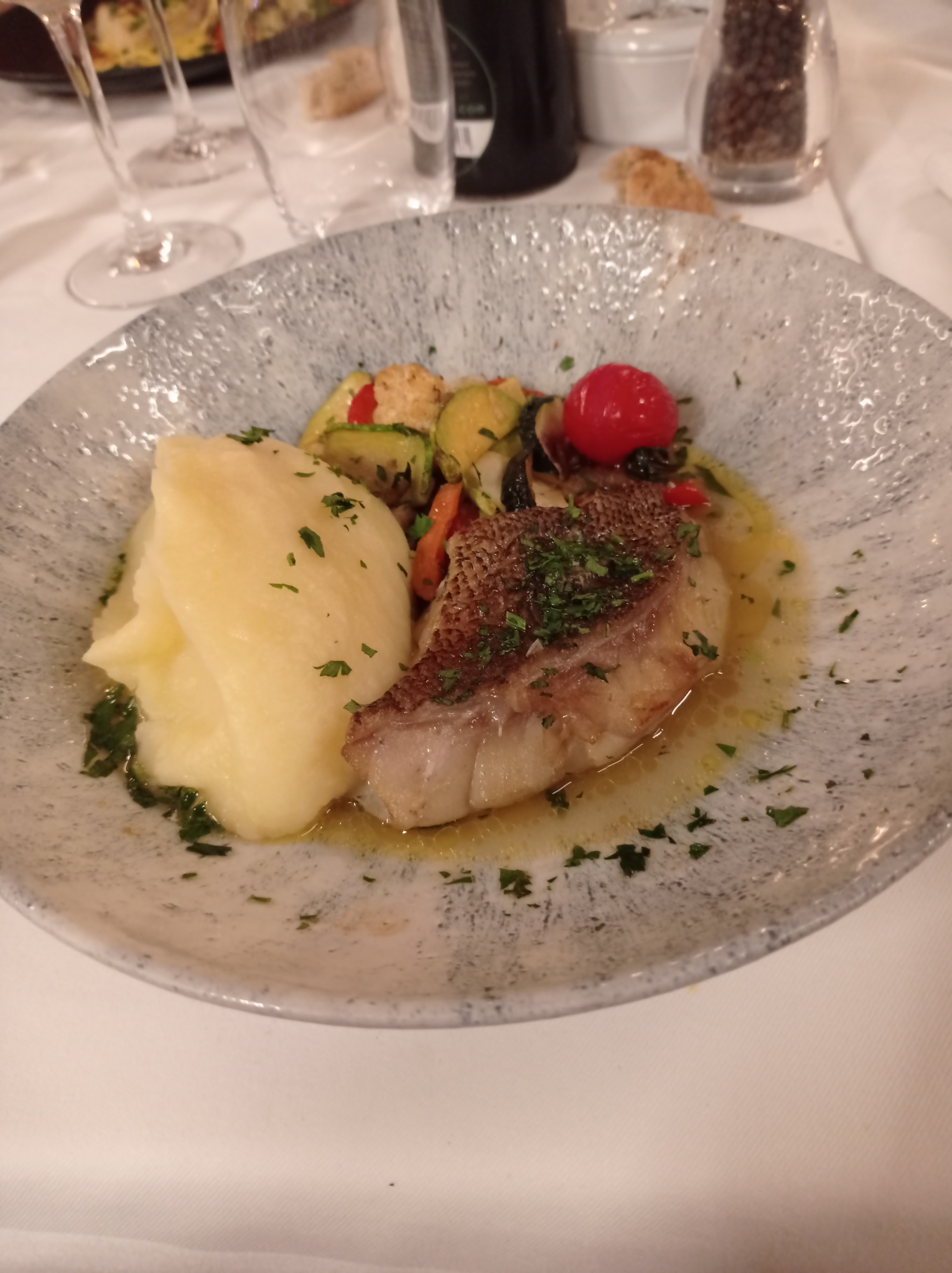 Posté le 20/09/2024 à 20:30"Menu à 52 e ..petites entrées sympas. Assortiment poissons grillés : trois minis morceaux pas du tout grilles dans une sauce poivrons quelconque. Viande pas tendre (filet) pommes de terre froides...déçu de la qualité et quantité. Service trop rapide ...stressant. nous ne reviendrons plus dans ce restaurant, dommage la situation et la vue étaient superbes !"