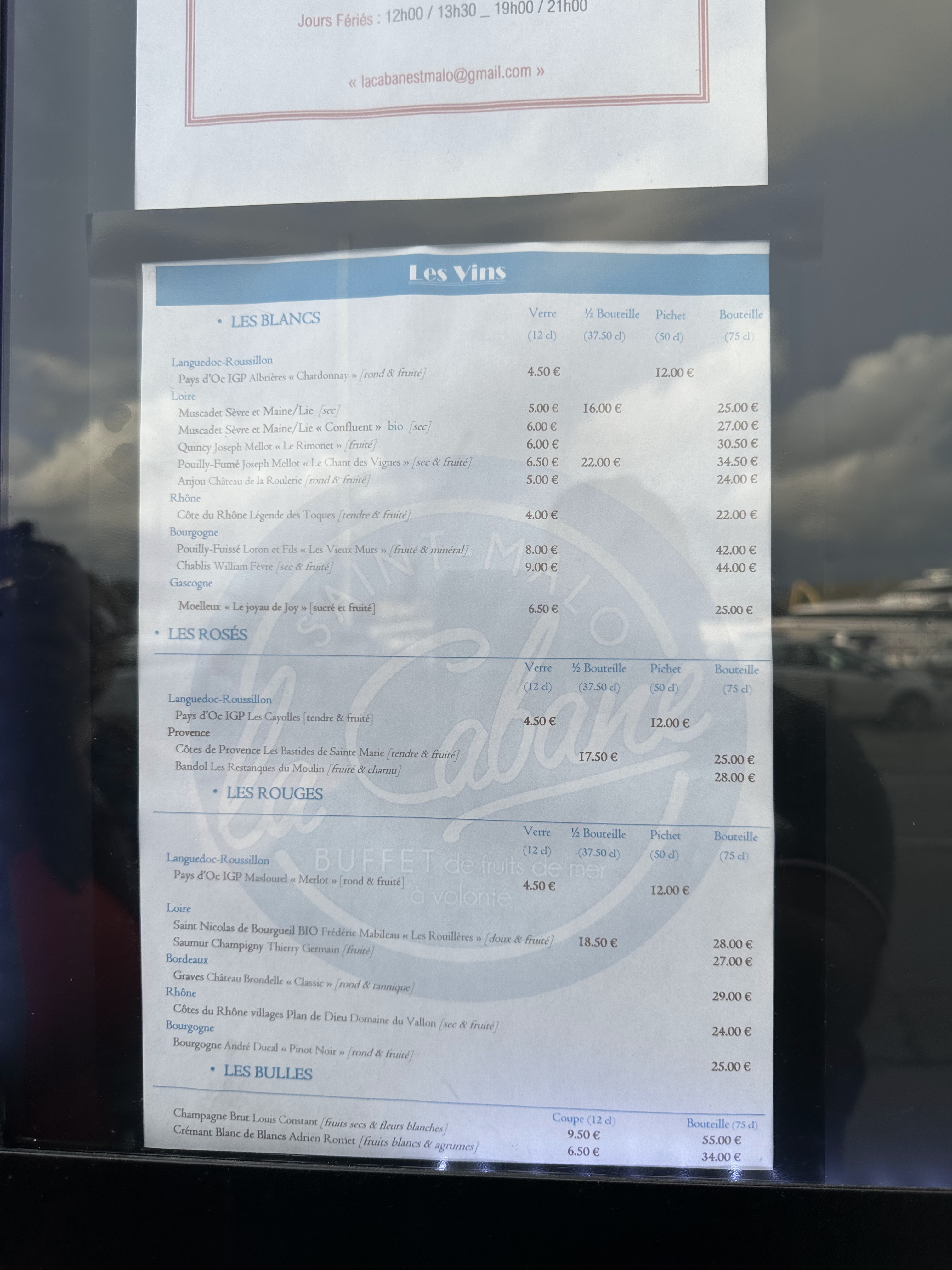 Posté le 09/09/2023 à 20:16"Depuis que je savais que j’ allais me rendre à saint Malo j’en rêvais. Eh bien je ne fus pas déçue. La personne a l’accueil très sympathique. Ce fut elle qui s’occupa de moi durant mon dîner. Très à l’écoute. Le buffet de fruits de mer, un régal. Huîtres, crevettes, bigorneaux, bulots, praires. Tout très frais et excellents. Le crabe idem. Je n’ai pas profité des fruits de mer poêles car je n’apprécie pas mais j’ai bien fait honneur au reste!! Plateau de fromages et far breton délicieux pour finir. Pas de doute. A ma prochaine escapade à saint Malo, je retournerai à la cabane !!!!"