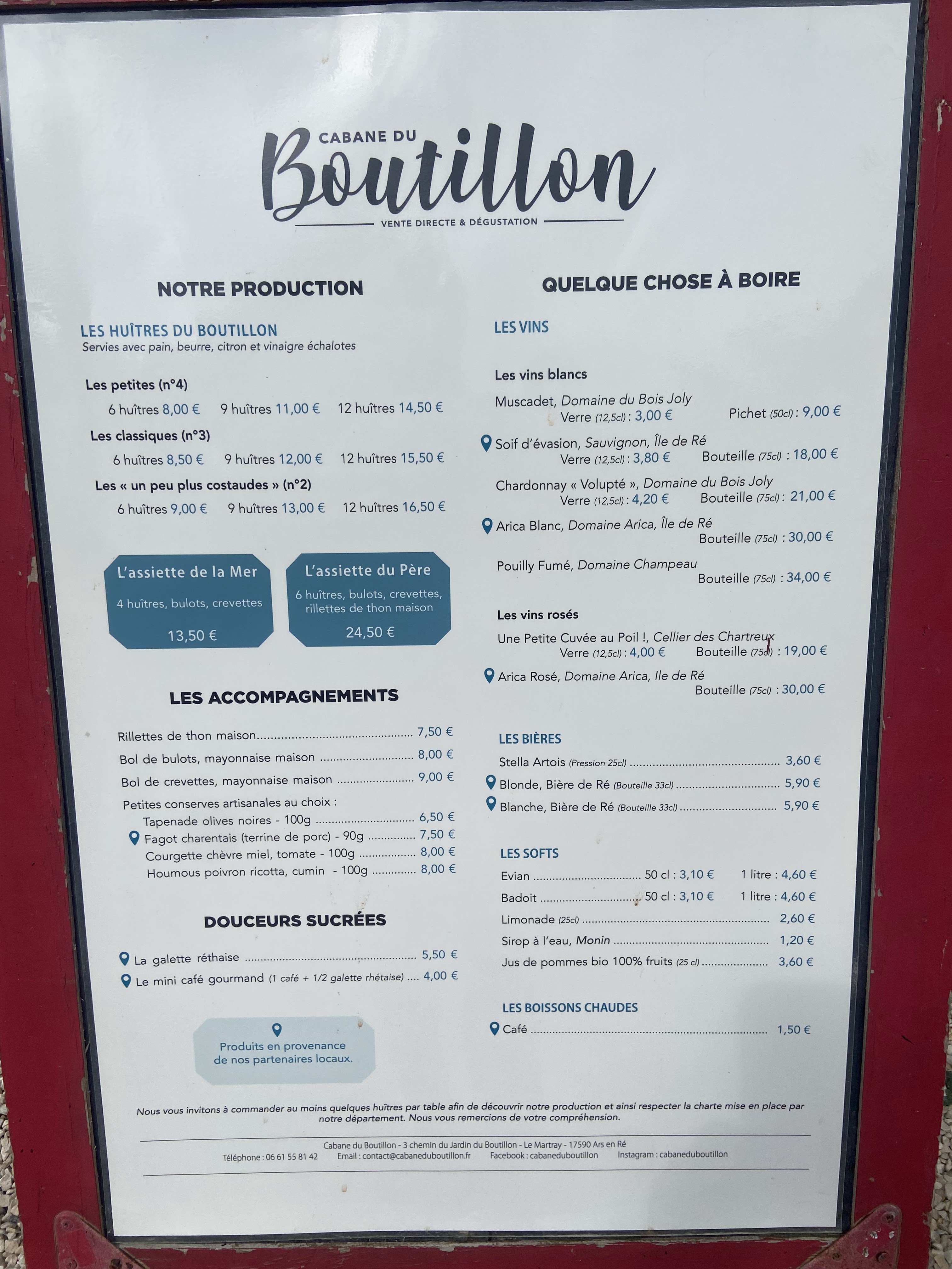 Excellente dégustation endroit très atypique de l ile de re avec de bon produits sa vaut le détour personnel très sympa et simple je reviendrai au prochain passage sur l'île