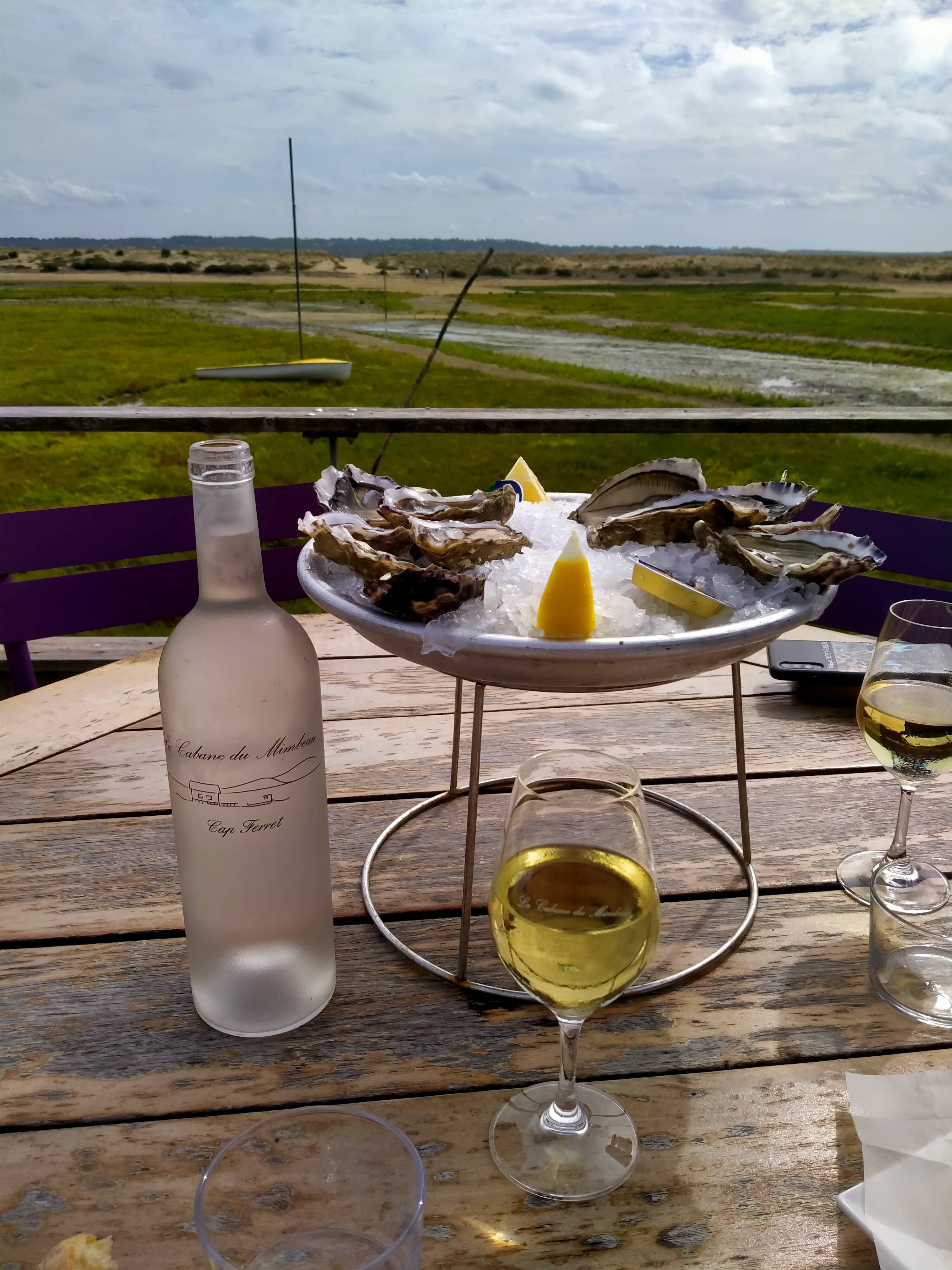 Plateau d'huîtres avec un verre de graves et une vue magnifique sur le pyla et la dune. Un très bon moment.