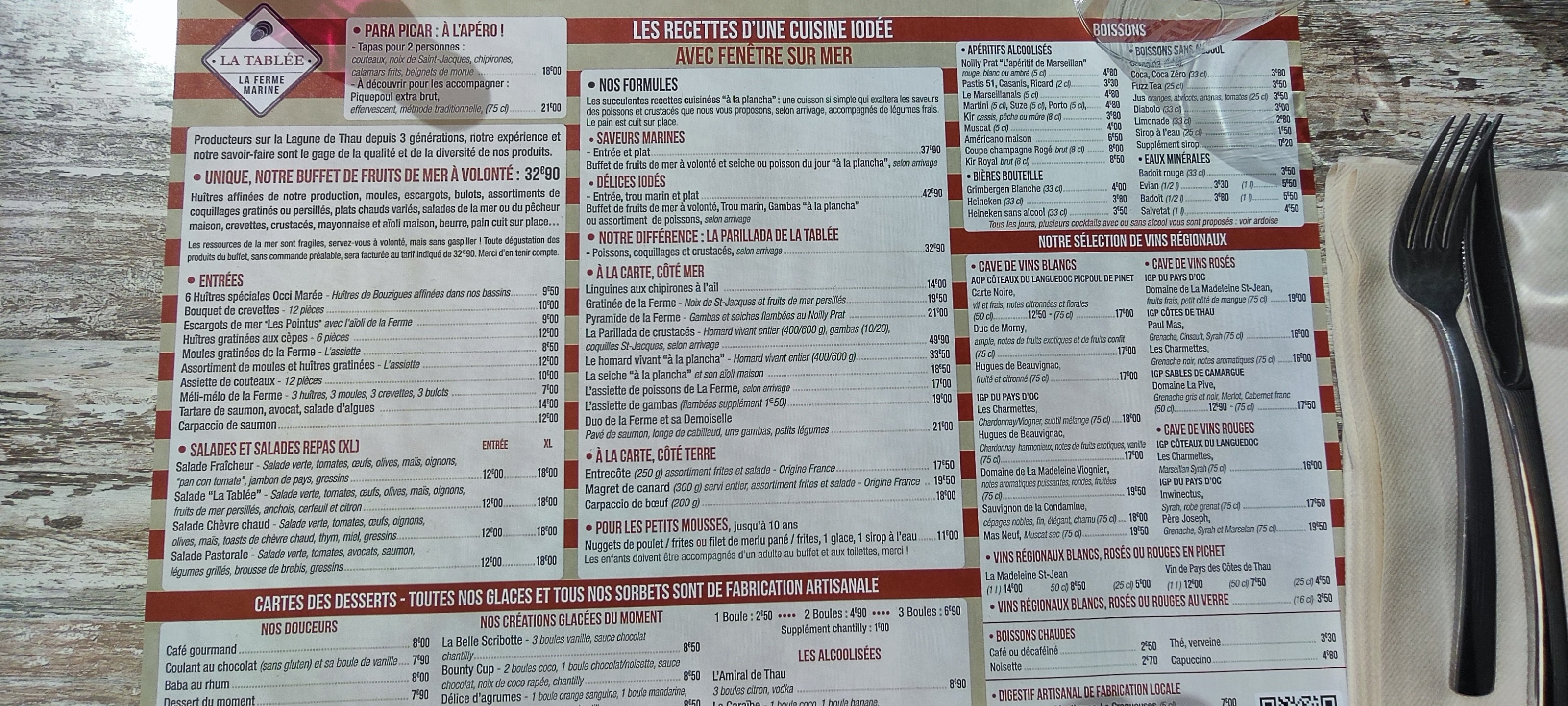 Posté le 28/09/2024 à 12:36"Super buffet de fruits de mer … plats chauds ….au bord de l’étang de THAU . Je recommande vivement"