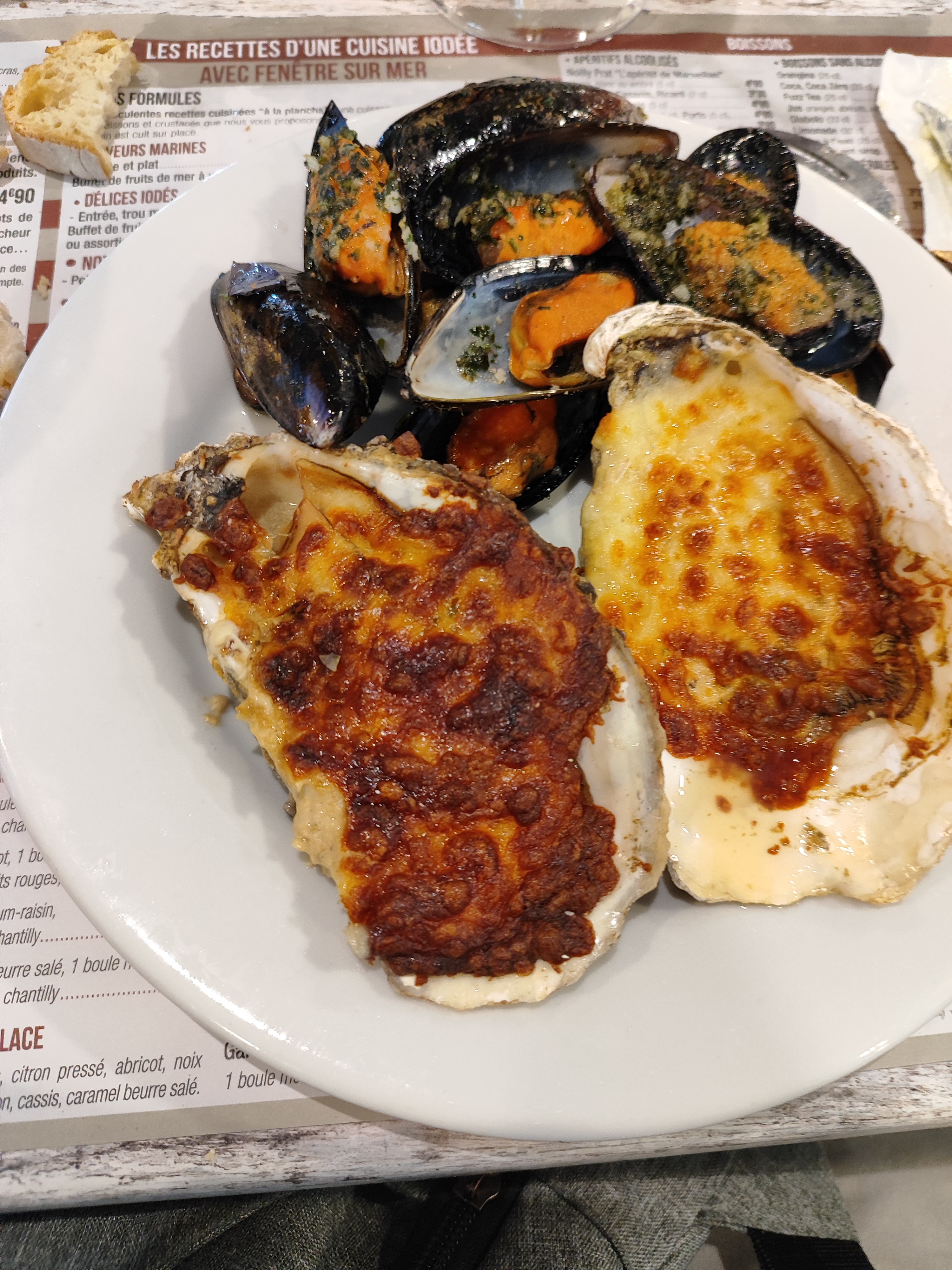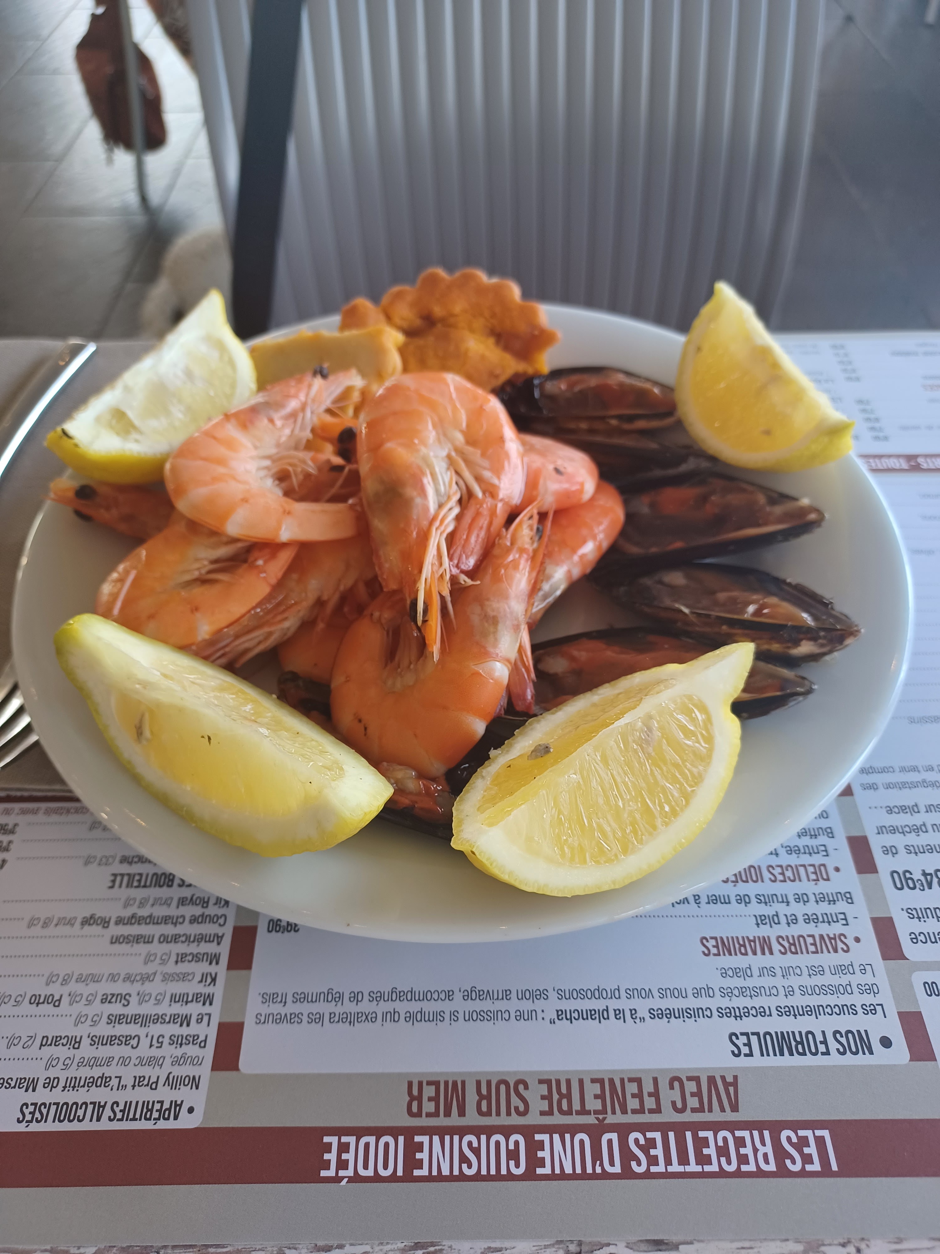 Posté le 21/09/2024 à 09:40"fruits de mer pas toujours frais tourteau et langoustines baignant dans l eau moules cuites desséchées faites de vrai court bouillon bonnes huîtres crues et la brandade bonne sévices sympa"