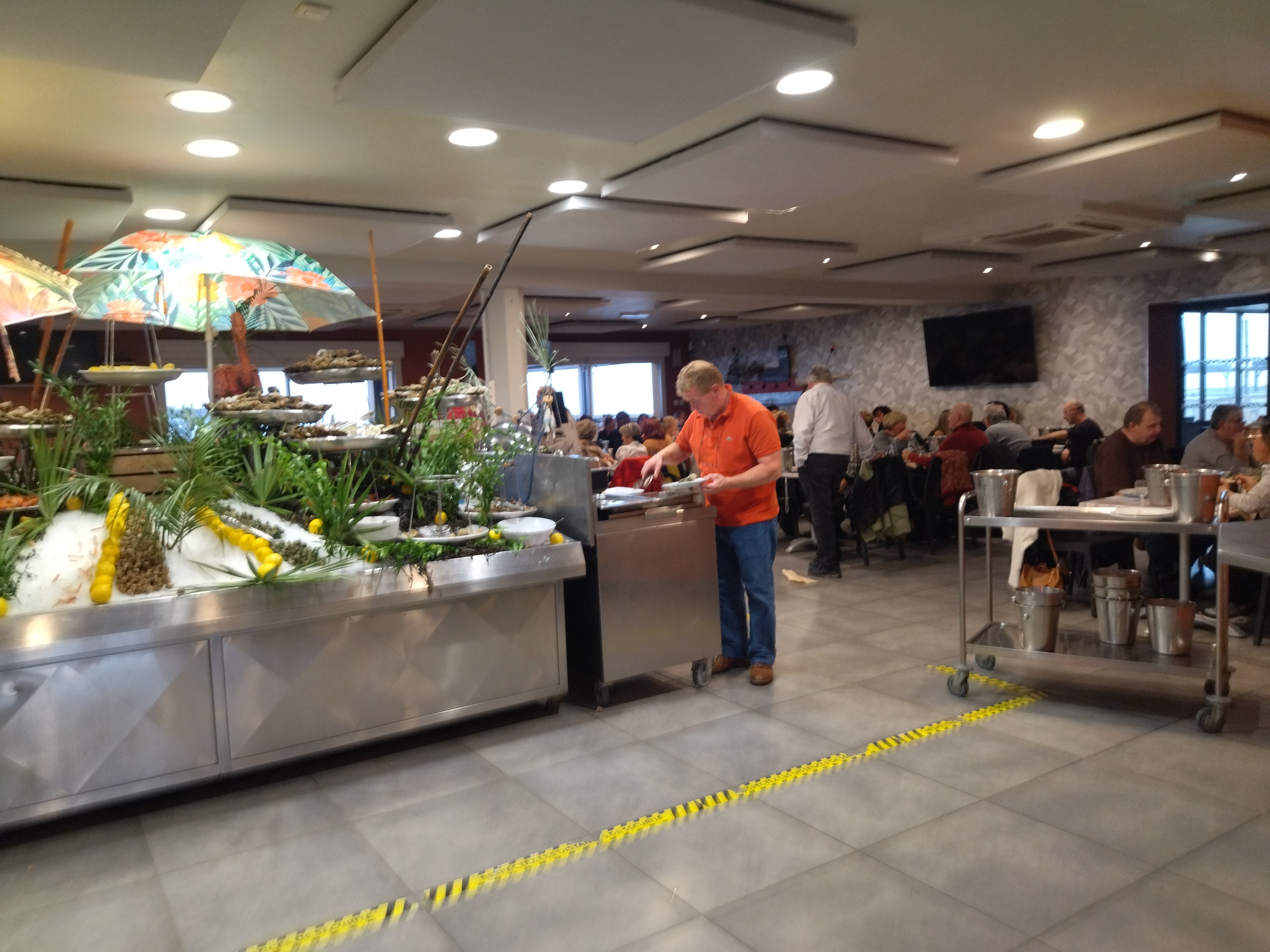 Posté le 25/02/2022 à 08:35"Buffet de fruits de mer (crevettes, huitres, bulots, salade ..) avec une formule à volonté. En plus des coquillages vous avez des plats chauds (huître gratiné, moule gratiné,..) Rapport qualité/ prix correct. Niveau service pas très compréhensif j'ai demandé un fruit, yaourt ou autre chose pour le dessert du menu de mon fils et on m'a répondu vous avez droit qu'à une glace tube on ne peut pas changer. Sur une grande table de 7 avec plusieurs apéro, bouteille de vin, formules et tous un dessert à la carte pas très sympa la réponse. Dernier point j'ai pris en dessert tutti fruiti coupe avec glace et salade de fruit mais à l'intérieur aucun fruits.. un peu déçue je suis restée sur ma faim 😞"