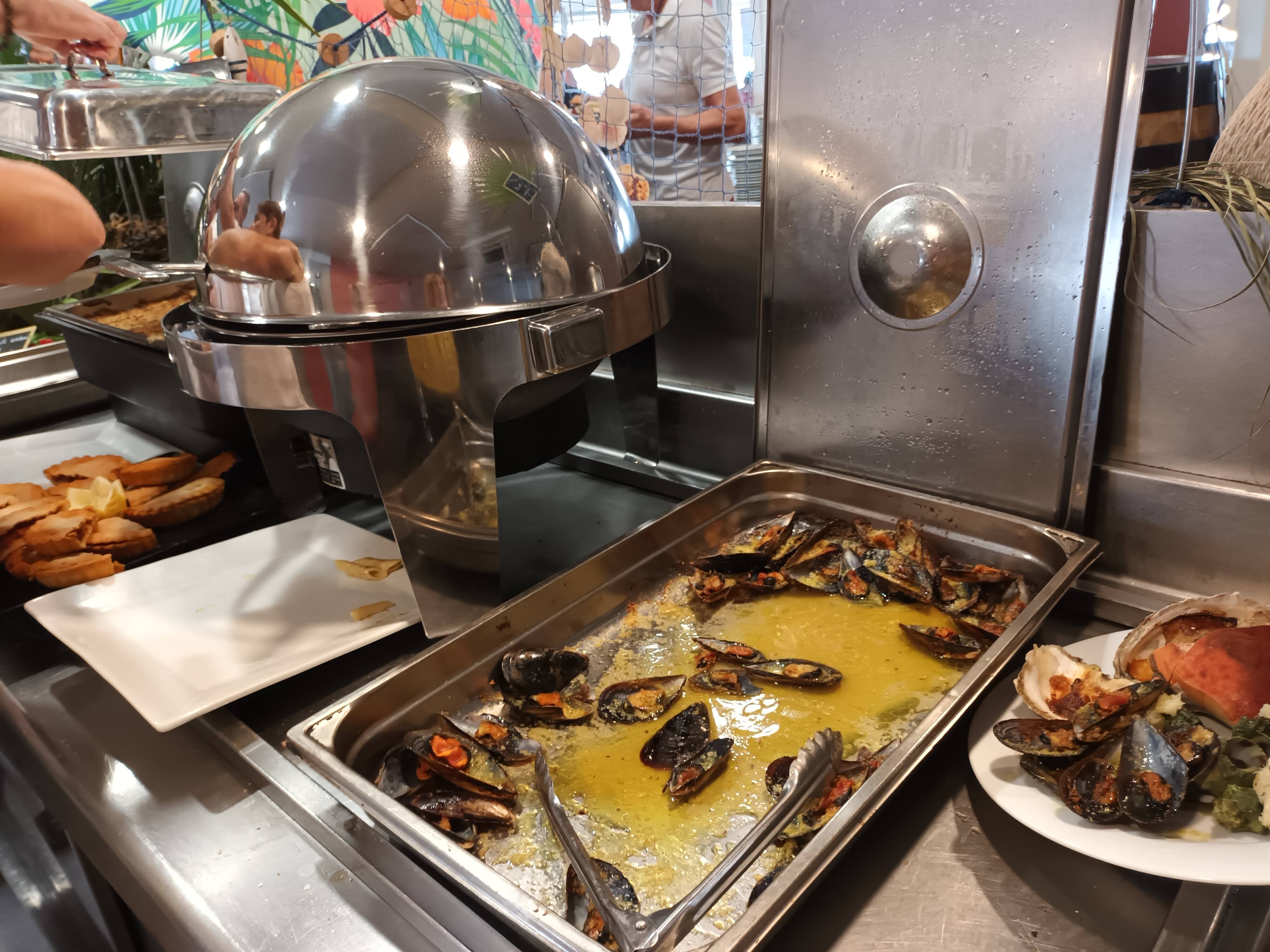 Posté le 22/09/2024 à 12:04"Le buffet a volonté des fruits de mer est varié et frais. Bémol les gens qui se jettent dessus.... Un fil ou un sens autour de celui ci sera le bienvenu"