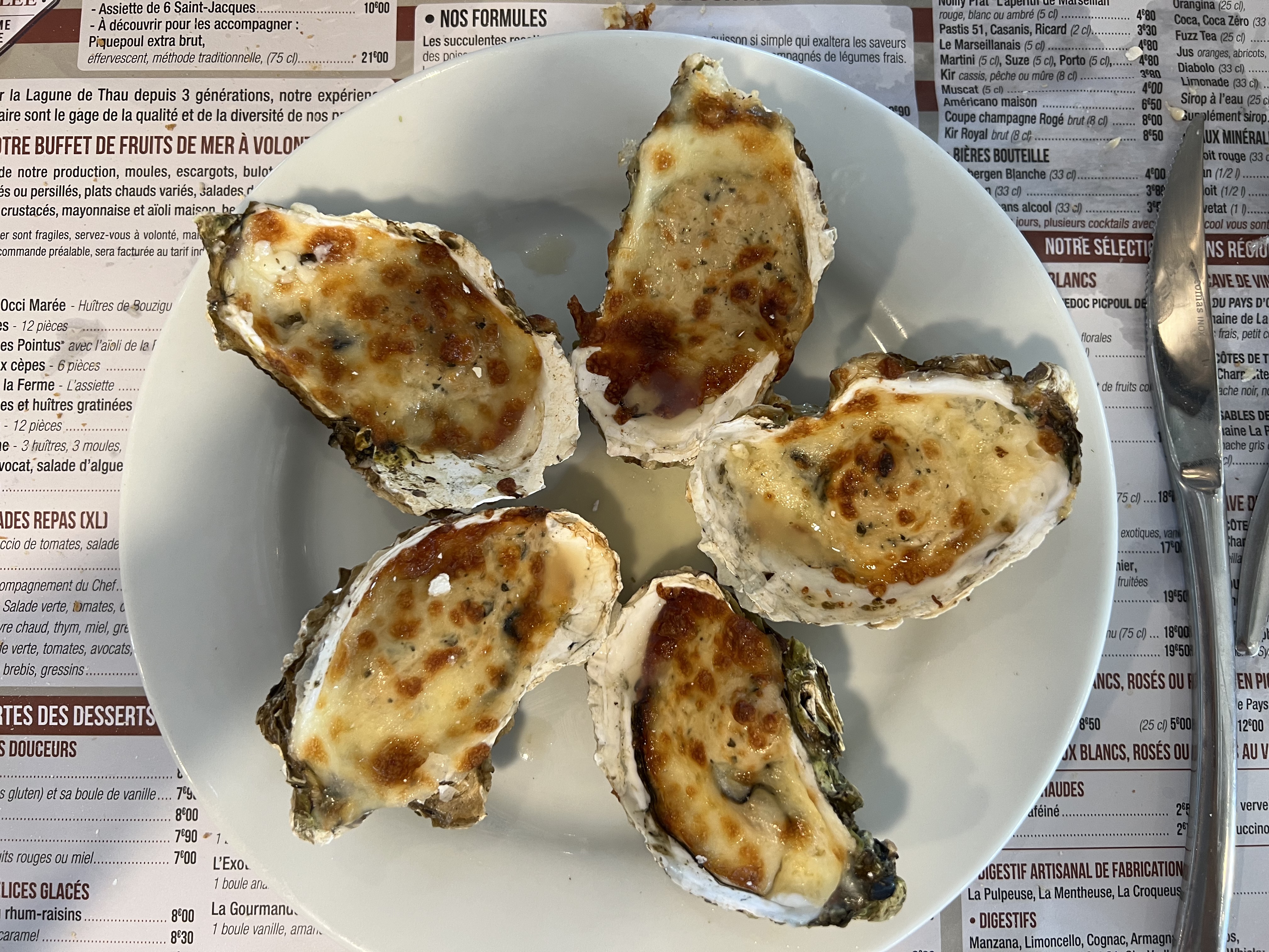 Posté le 29/07/2024 à 19:36"Un lieu réservé aux initiés des fruits de mer. Une avalanche d'huîtres à volonté, produites dans les parcs qui s'étendent sous vos yeux : le bassin de Thau . C'est simplement magnifique et tellement bon! Par contre pour les gourmands, essayez de garder un peu de place pour un dessert : leurs profiteroles sont mémorables !..... Le personnel est aux petits soins ce qui ne gâche rien . Pensez à réserver ! Et bon appétit 😘"