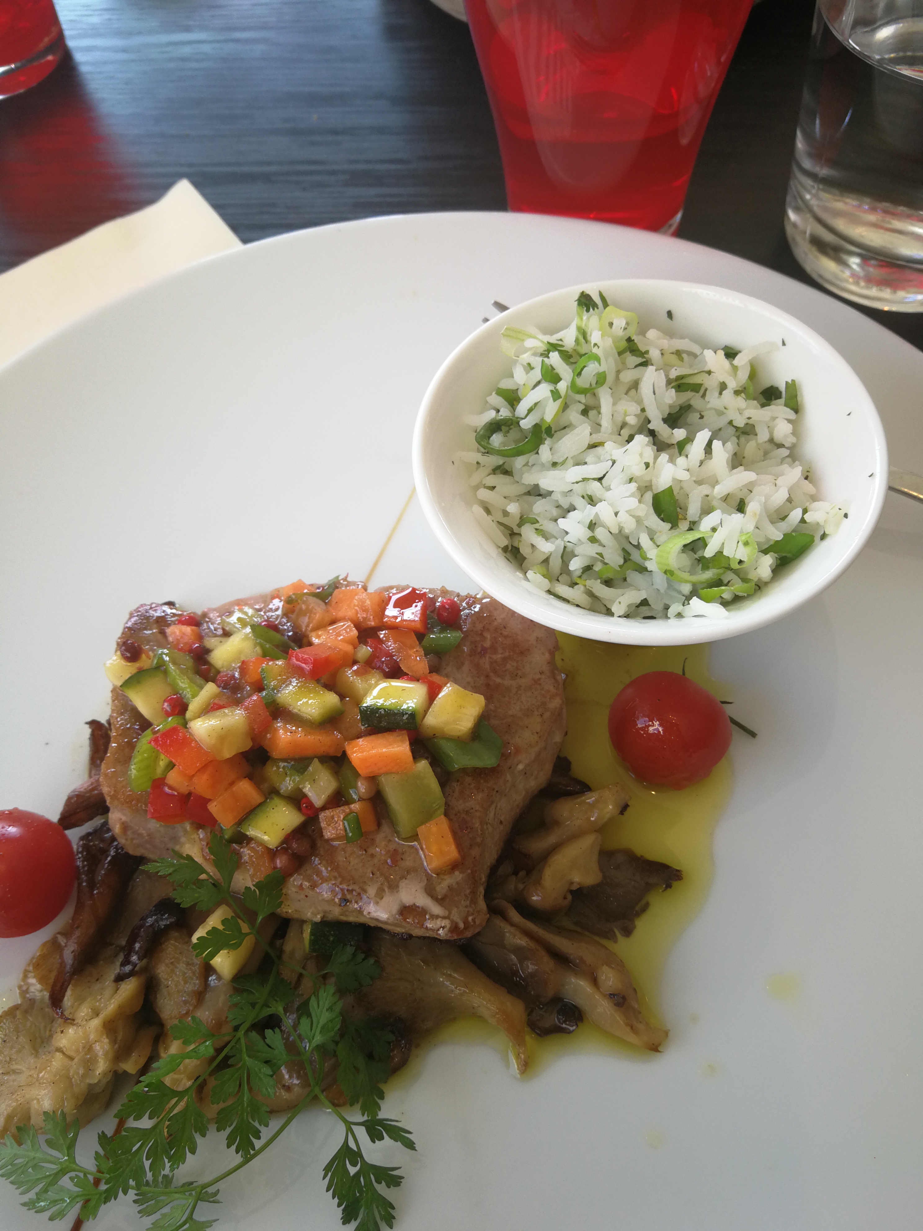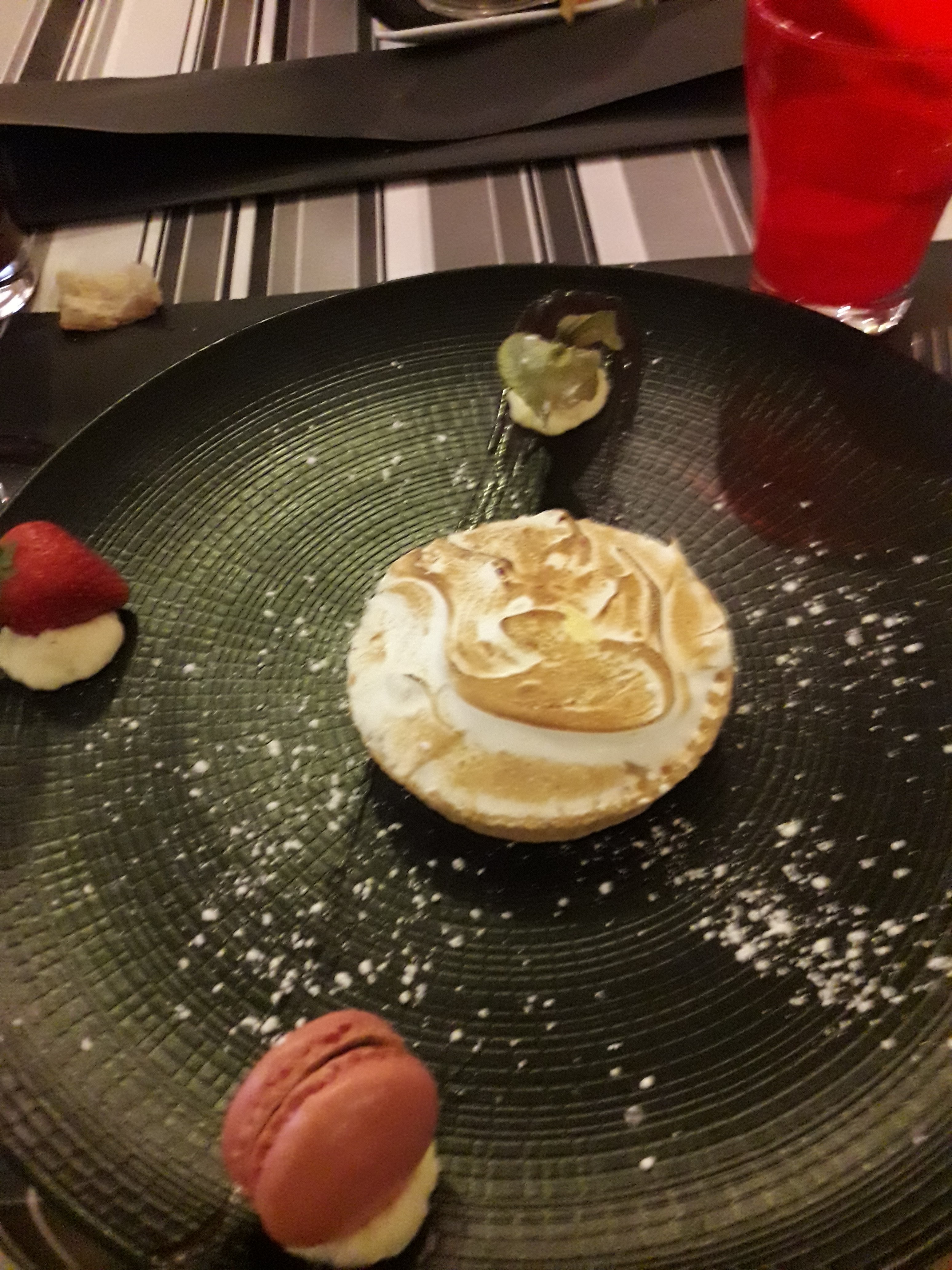 Plat principal : un peu léger dans l’assiette mais bon Pavlova revisité : pour le coup c’était une salade fruits car il n’y avait que quelques vermicelles de meringue. Déçue !!