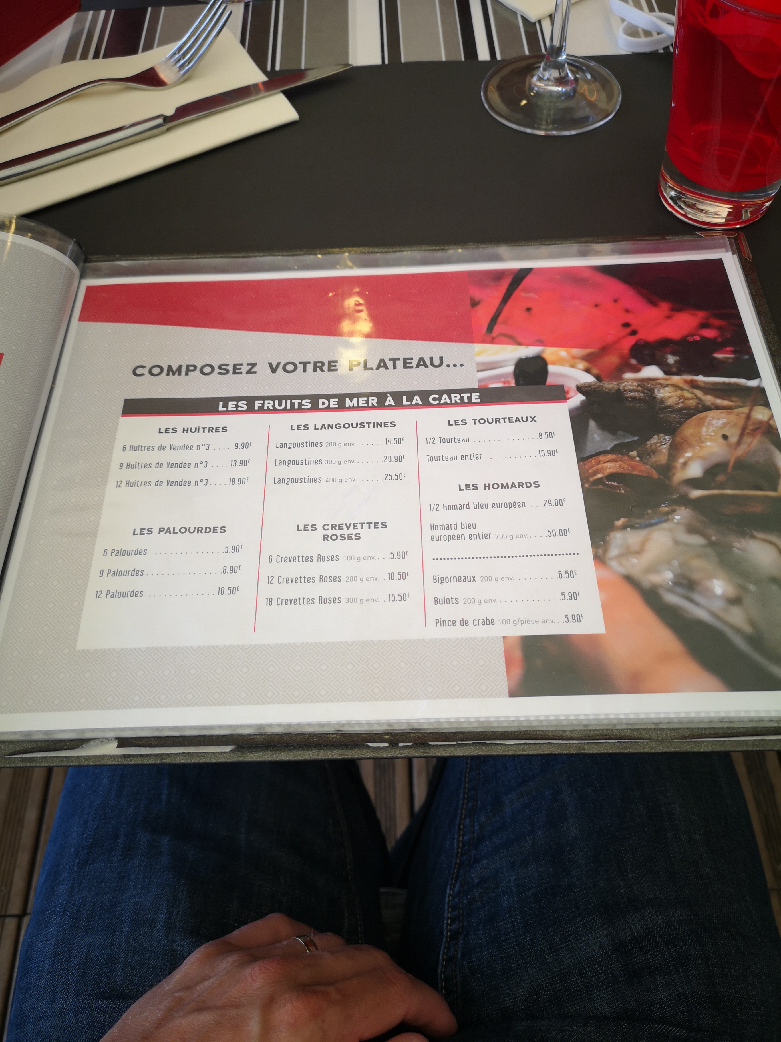 Menu à 39€ (langoust'in) excellent!! Les fruits de mer pour moi qui est pas trop fan bah je me suis laissé tenté et je n'ai pas été déçu!! Les desserts excellents (essayez le colonel!!!) Accueil très agréable et ils s'occupent bien du bien être des enfants!