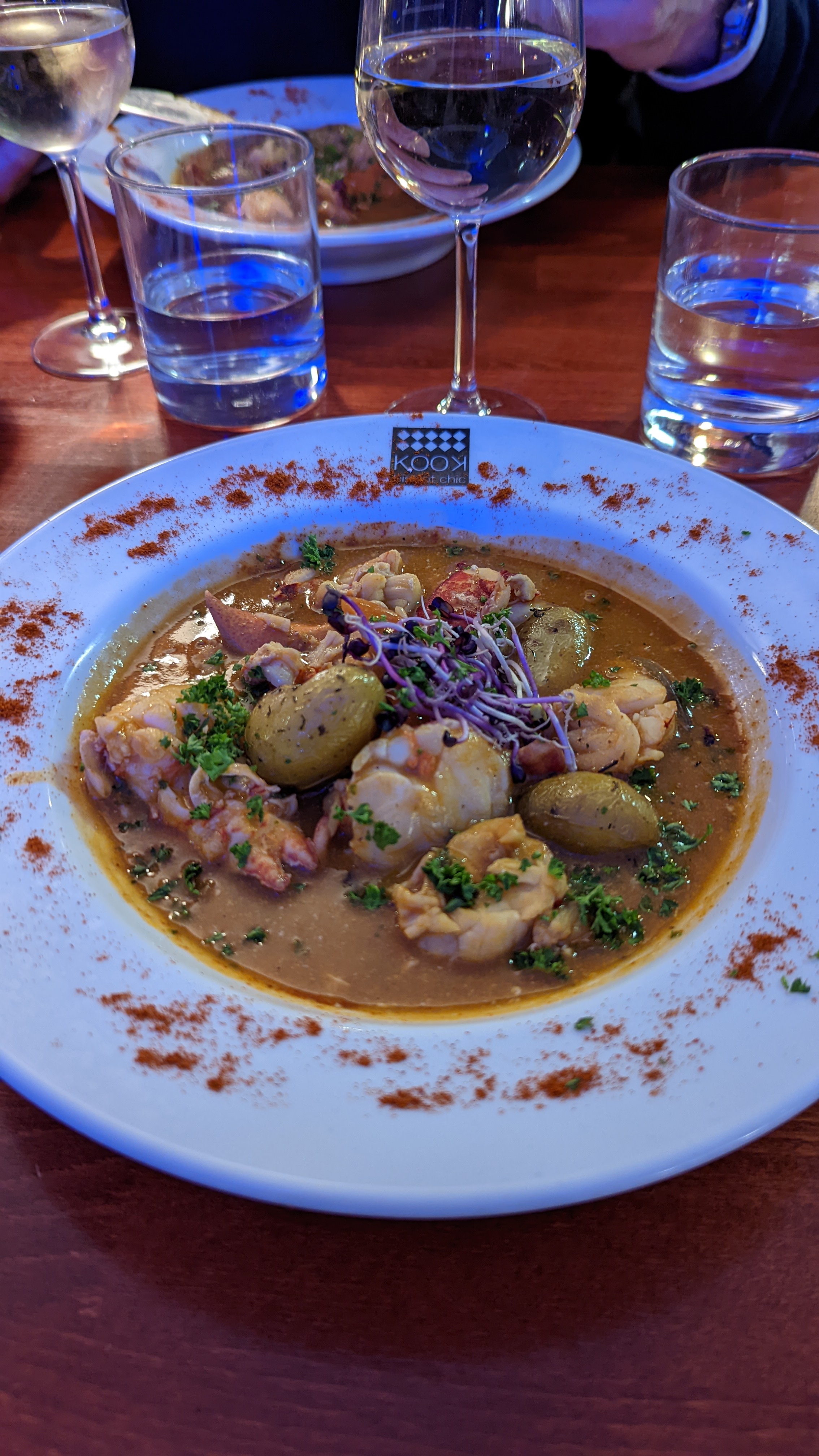 Excellentes huîtres Poulpe au curry top Penne au homard esquis Très très bon