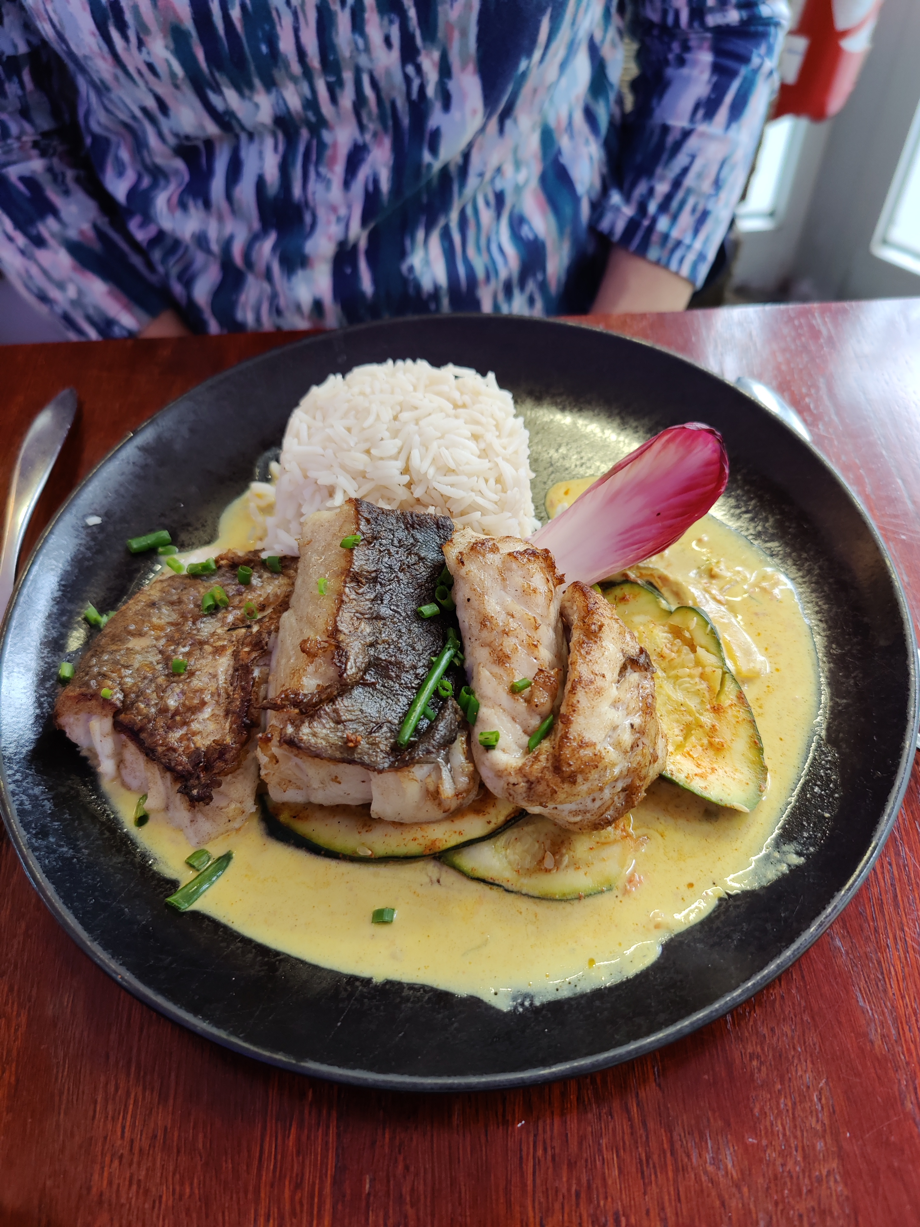 Excellent, de la soupe de poisson aux ailes de raie sauce mangue passion, un Régal Recommandé par le conducteur du petit train de Quimper 👌 On y retournera dès notre prochain passage