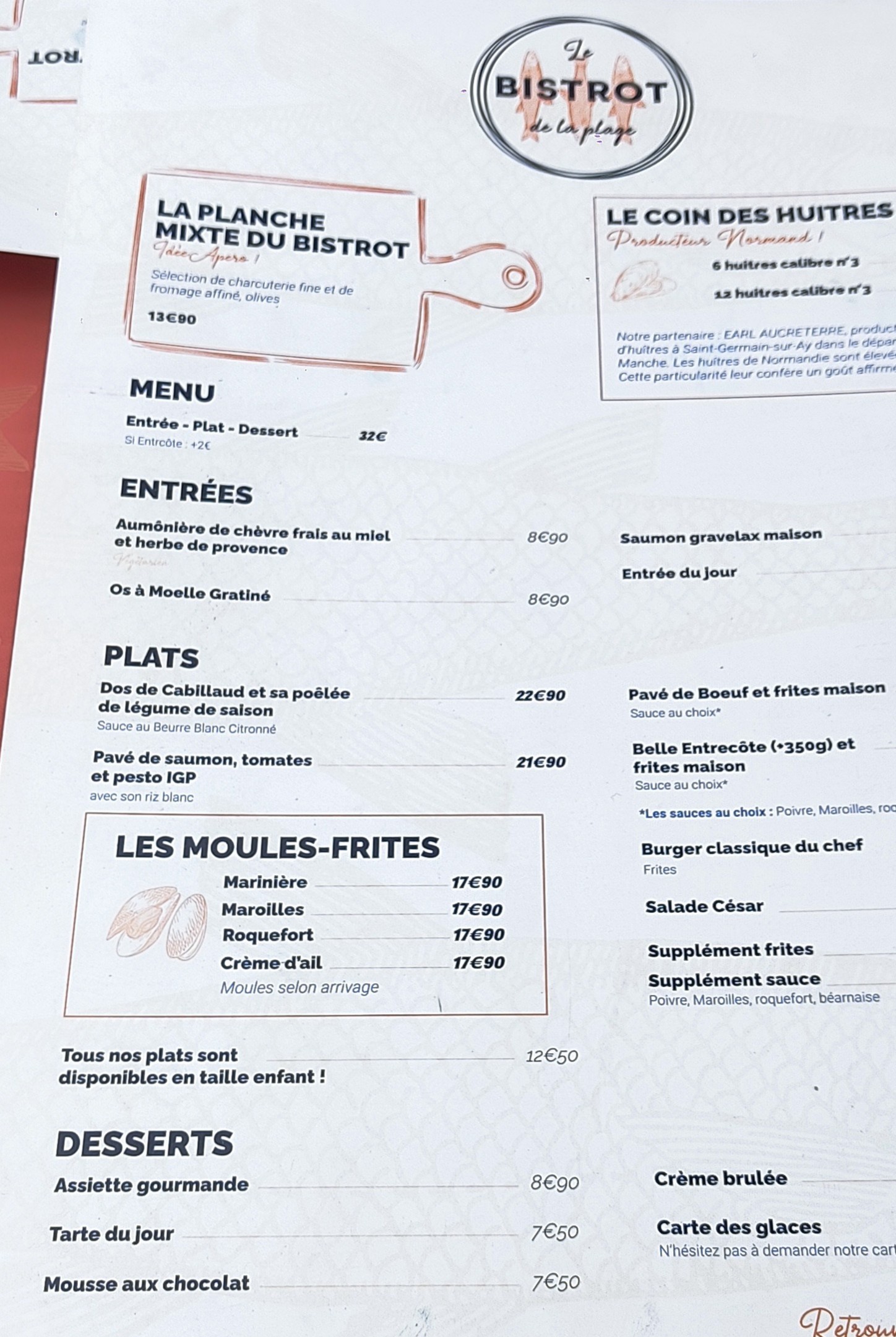 Posté le 25/08/2023 à 09:20"Qu'elle tristesse depuis le changement de propriétaire !!!! Plus aucun sourire, tout est servi sans saveur c'est devenu un restaurant impersonnel on ressent bien que ce ne sont que des gérantsqui sont la pour faire de l'argent !!! C'est tellement dommage pour nous, Les clients réguliers, reprendre une institution, profiter des stickers guide Michelin, petit futé etc ... Sans avoir les épaules !!!! Ça tue une enseigne réputée !!!! C'est fini pour moi, vivement la reprise de ce restaurant par un vrai restaurateur !!!! Je ne vous conseille plus ce restaurant !!!! C'est sois disant du produit frais et pourtant je ne me suis pas régalé avec les moules au maroilles, de plus on commande Une planche apéro charcuterie fromage, ça arrive sans fromage, bah y'a plus de fromage.... super 👍 plus rien à voir avec le vrai restaurant bistrot de la plage ne vous fiez pas aux commentaires de plus d'1 an!!!! C'est plus du tout pareil !!!! Avant c'était plein tout le temps, fallait réserver pour avoir une table, aujourd'hui c'est plein grâce aux touristes !!!! L'été!!!! on verra cet hiver.....sans clients réguliers, je ne donne pas cher a ce restaurant !!!!je ne reviendrai pas dans ce restaurant !!!! La responsable n'est pas souriante, pas agréable.... c'est devenu une usine à fric et c'est vraiment trop triste !!!!!"