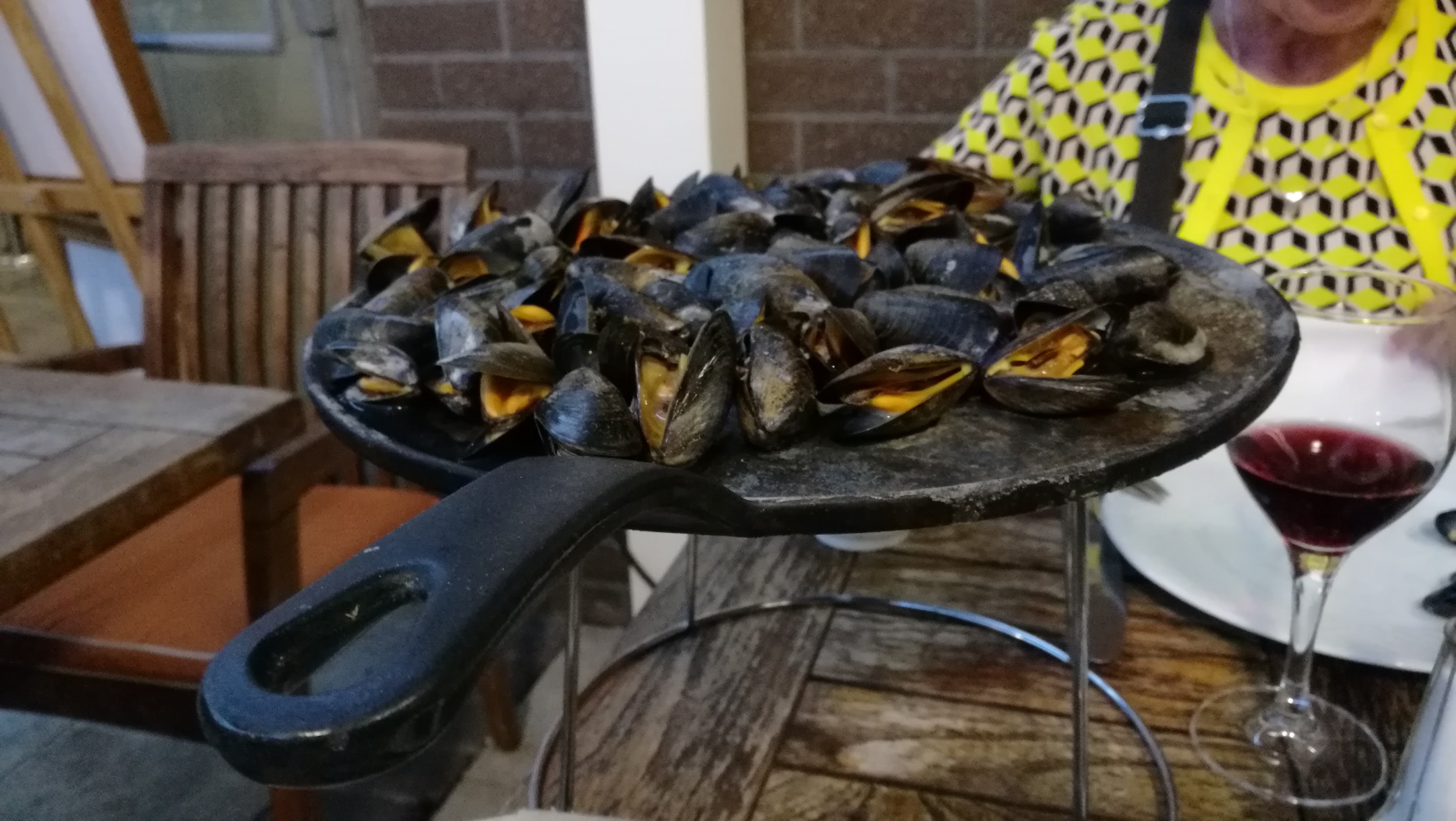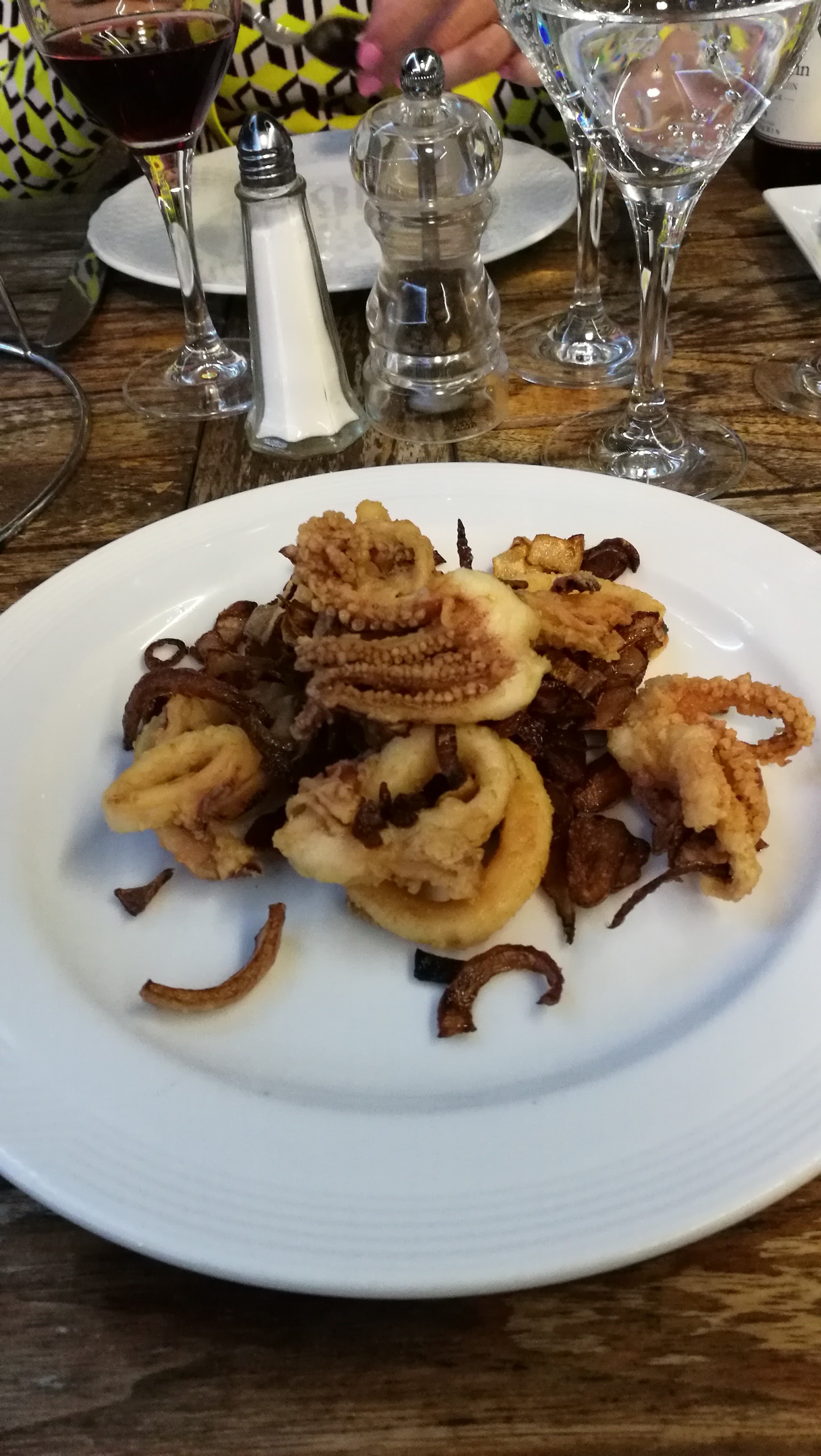 Pinces de crabes, fruits de mers pour madame et calamars persillés pour moi, vin blanc très honnête pour un premier prix et dessert... tout bon 😁😁😁