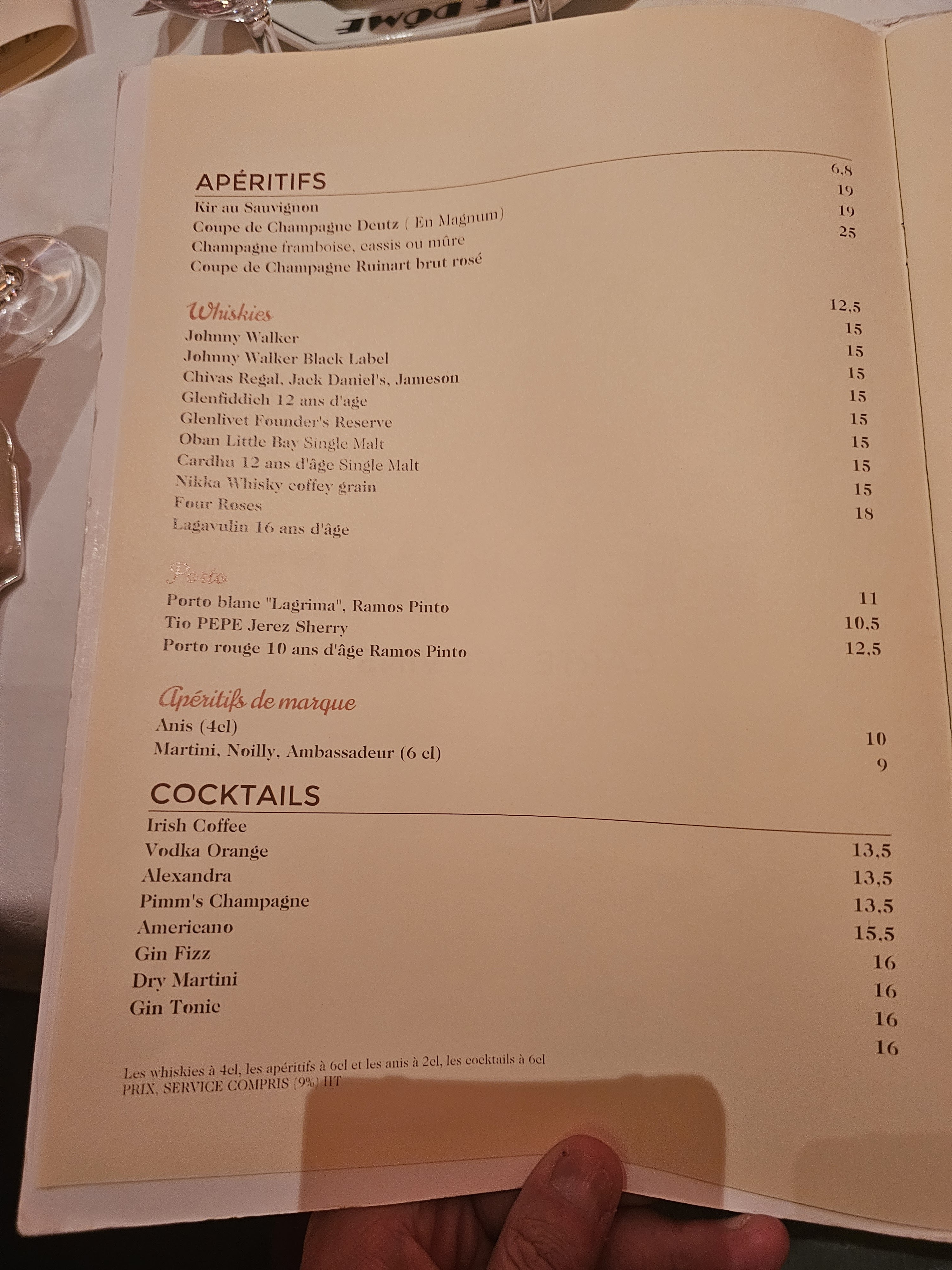 Ce n'est plus le Dôme que je connaissais. Déçu du repas, poisson saint-pierre trop cuit sec sans goût trop cher pour cette qualité service moyen verre avec rouge à lèvre, serveur sympathique mais apparemment en apprentissage. Nous ne reviendrons pas