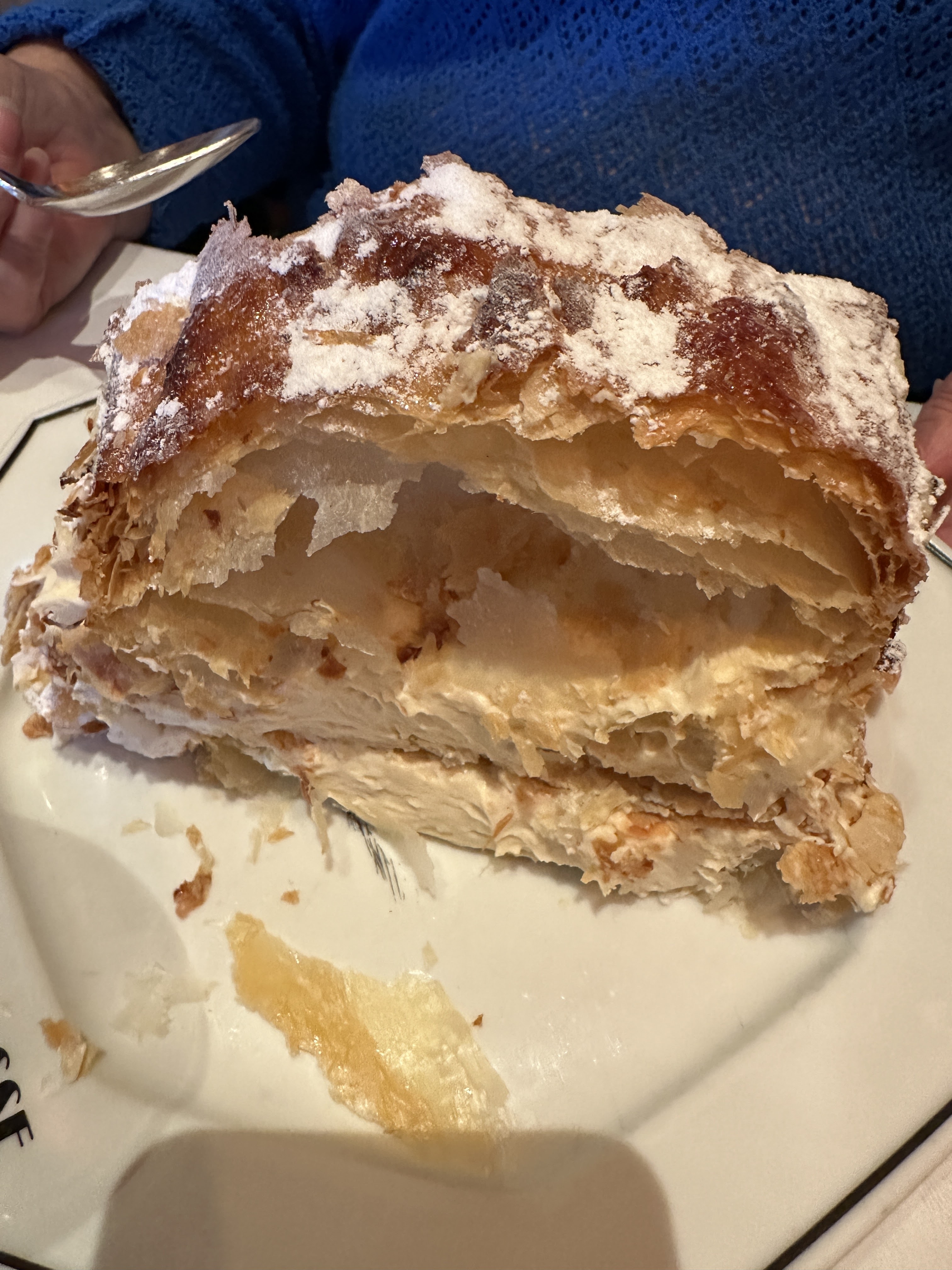 Ambiance très parisienne du bistrot autour de la mer accueil chaleureux et enthousiaste un mille feuilles impérial